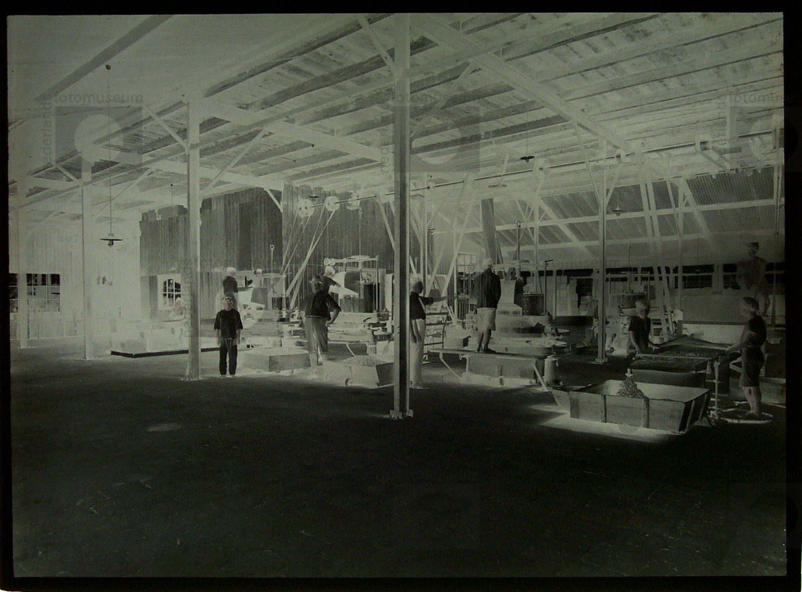 Interieur van een thee(roller)-fabriek, Java, Indone...