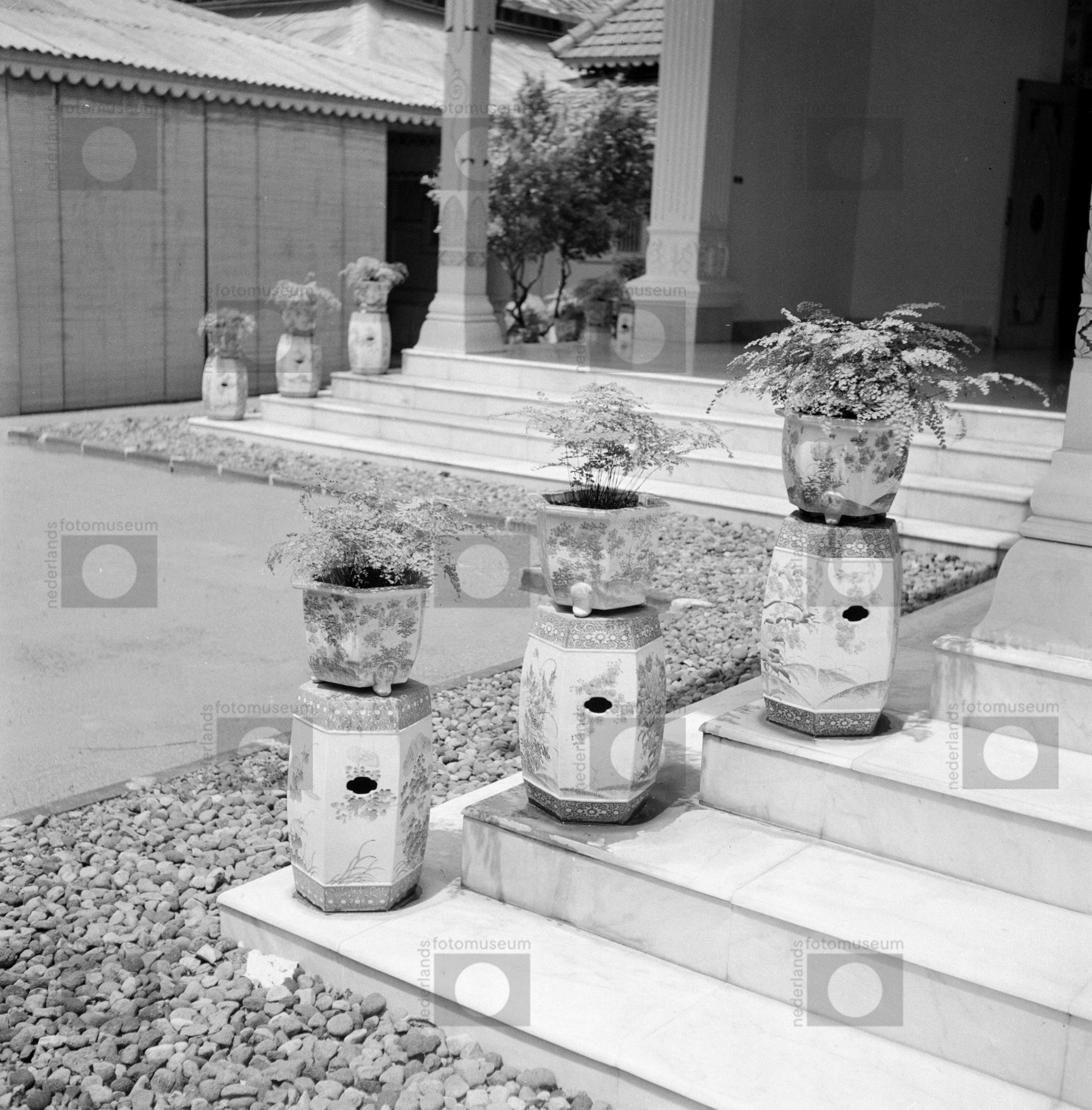 Marmeren bordes met potplanten in de kraton van de s...