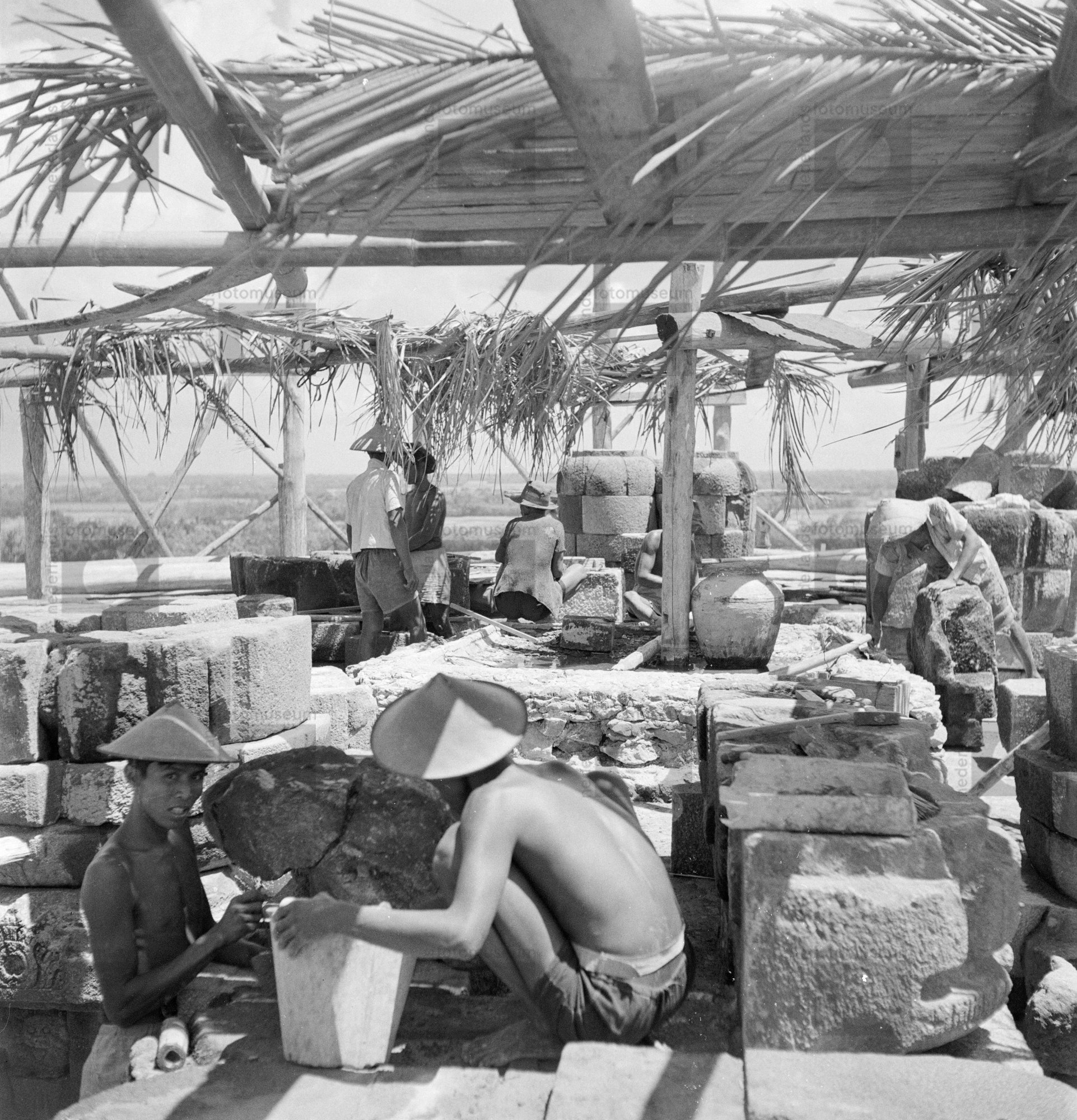 Restauratie-werkzaamheden aan het Hindoeïstisch temp...