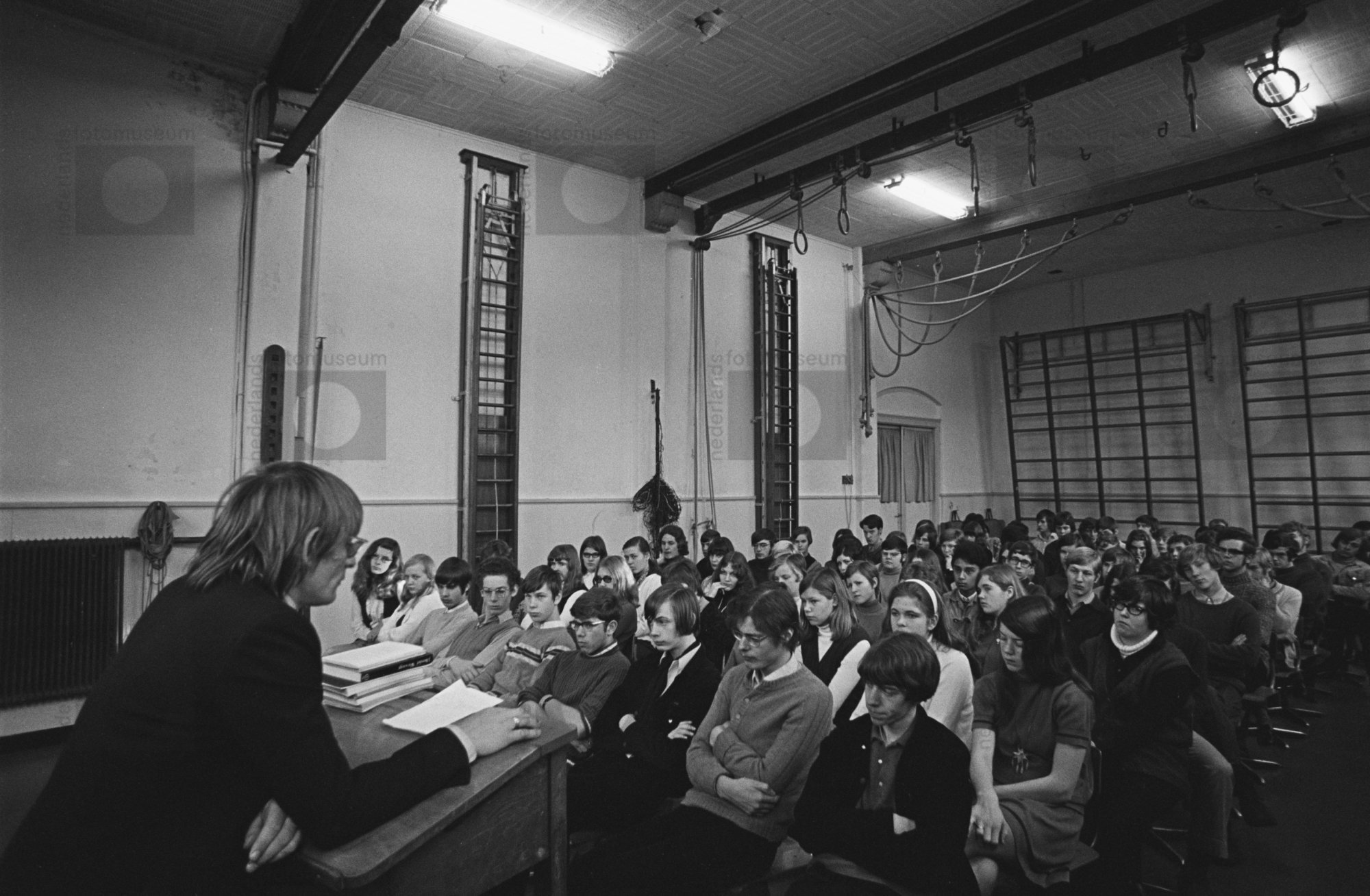 Henk Bernlef,schrijver. Voordracht op een school te ...