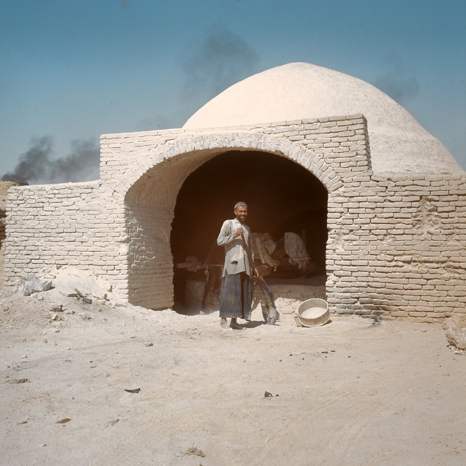 Voorzijde kalkmolen ten noorden van Isfahan in Iran