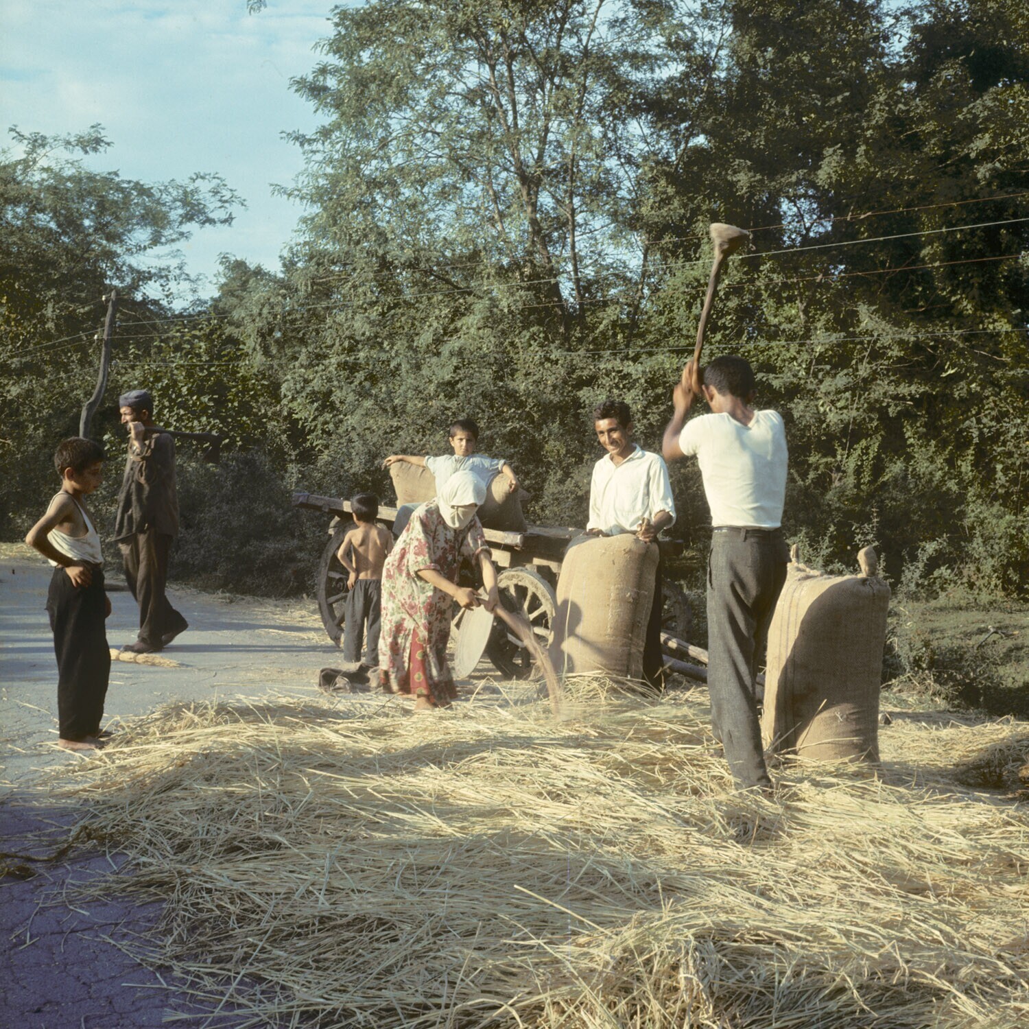 Graandorsen in een dorp ten Noordwesten van Azarb in...