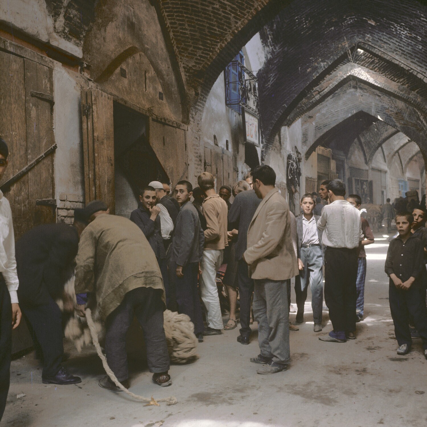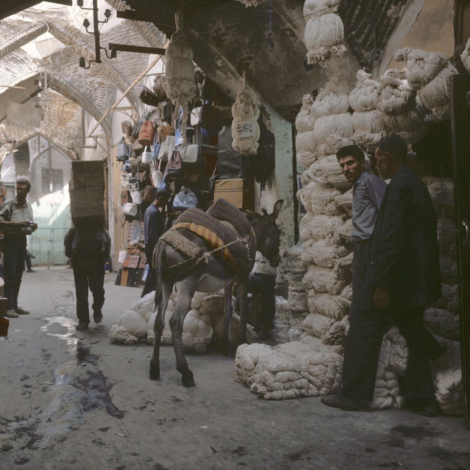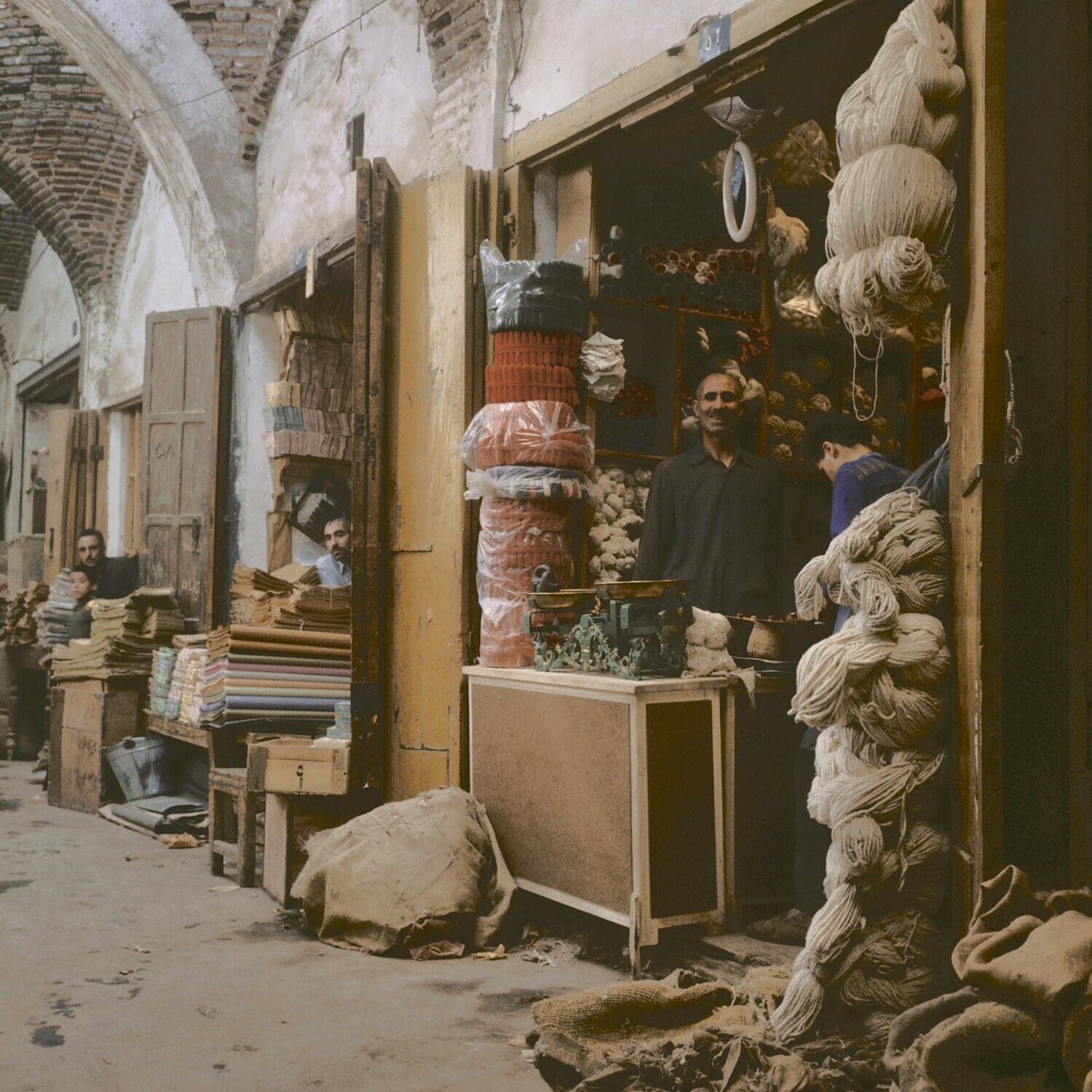 Touw en textielstalletje in de bazar van Tabriz in Iran