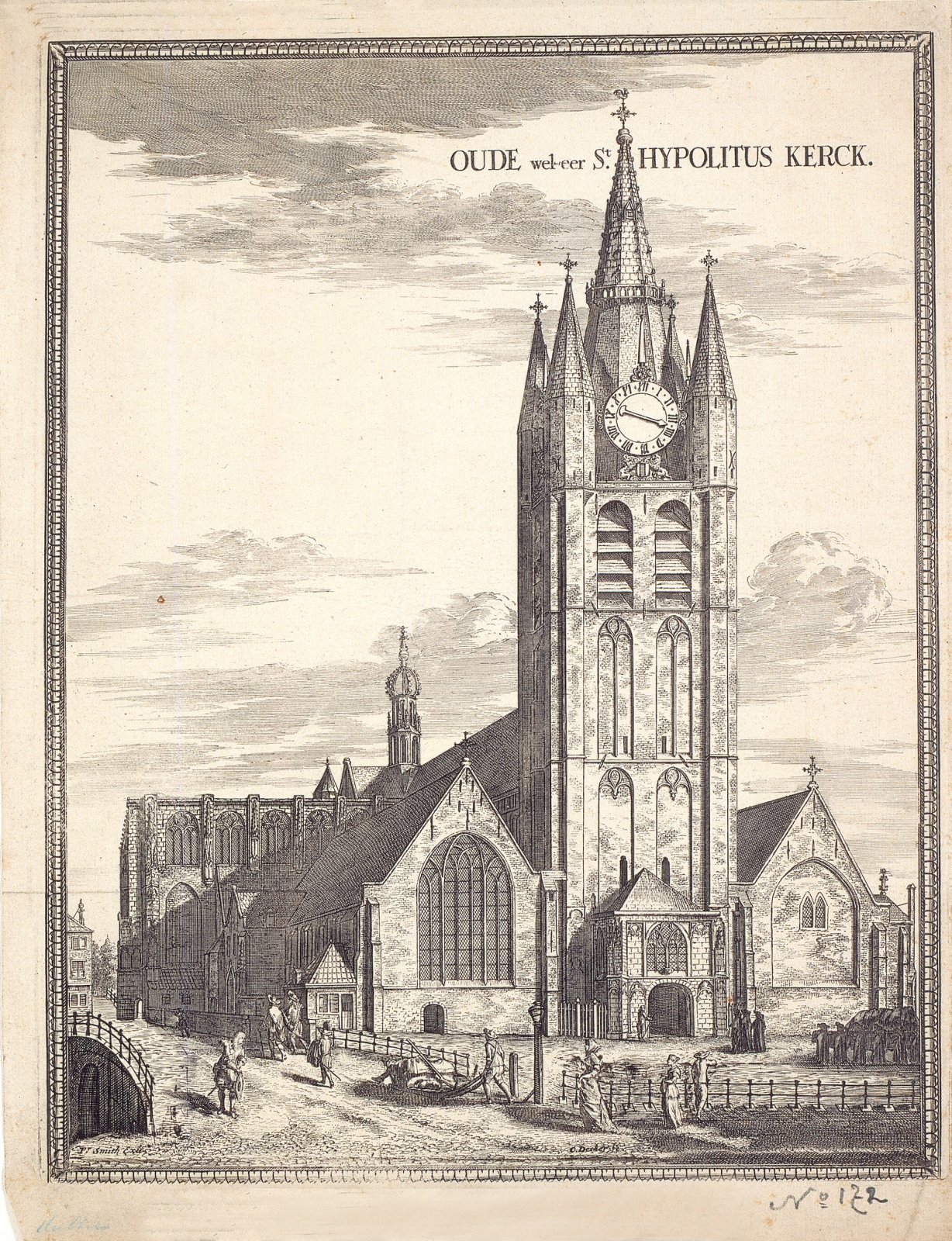 Gedeelte van het Stadhuis, de Nieuwe Kerk en de Groo...