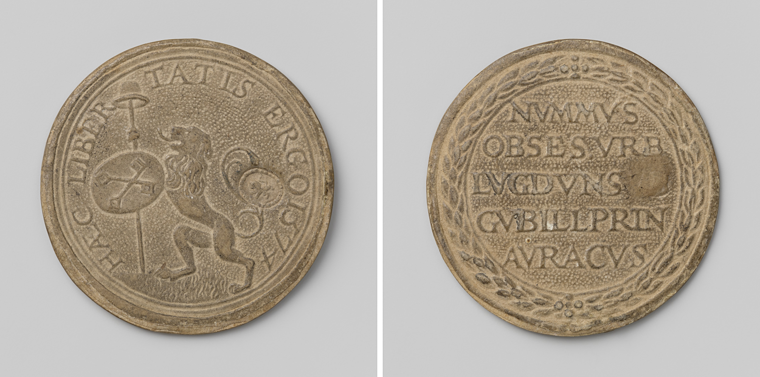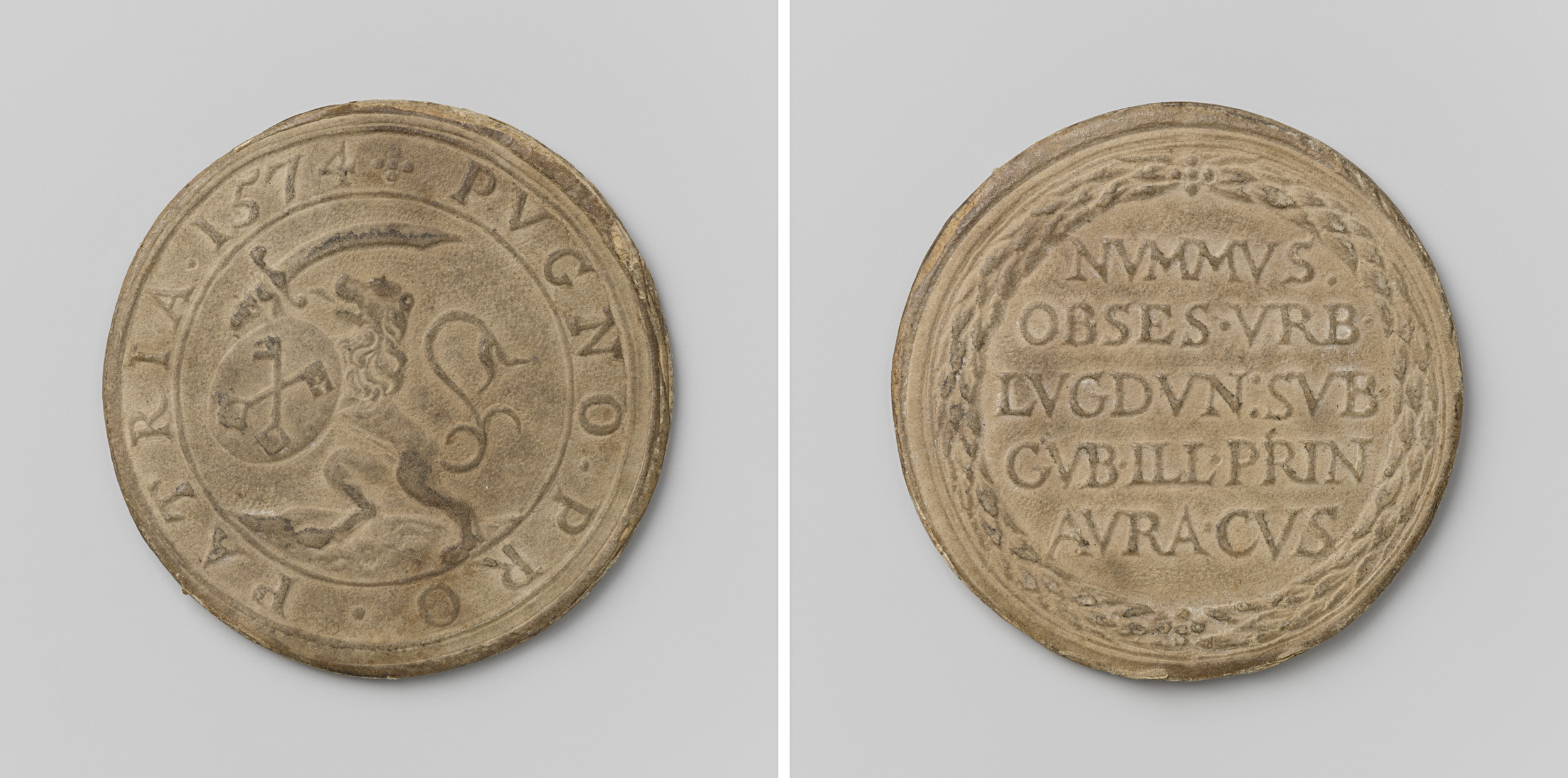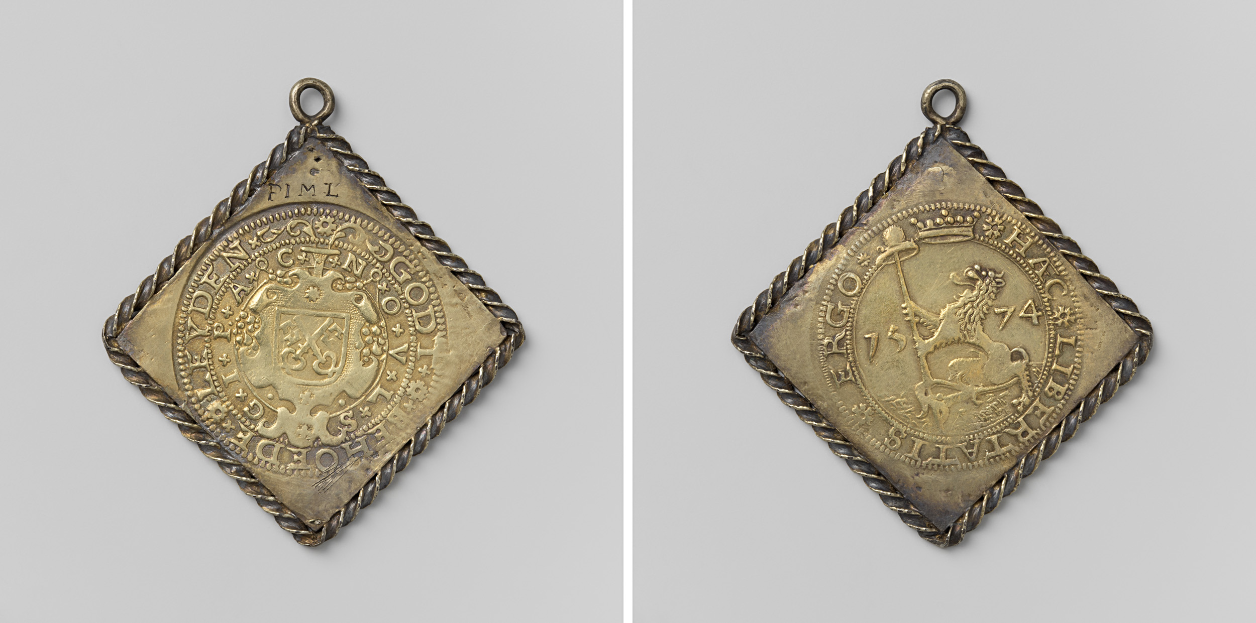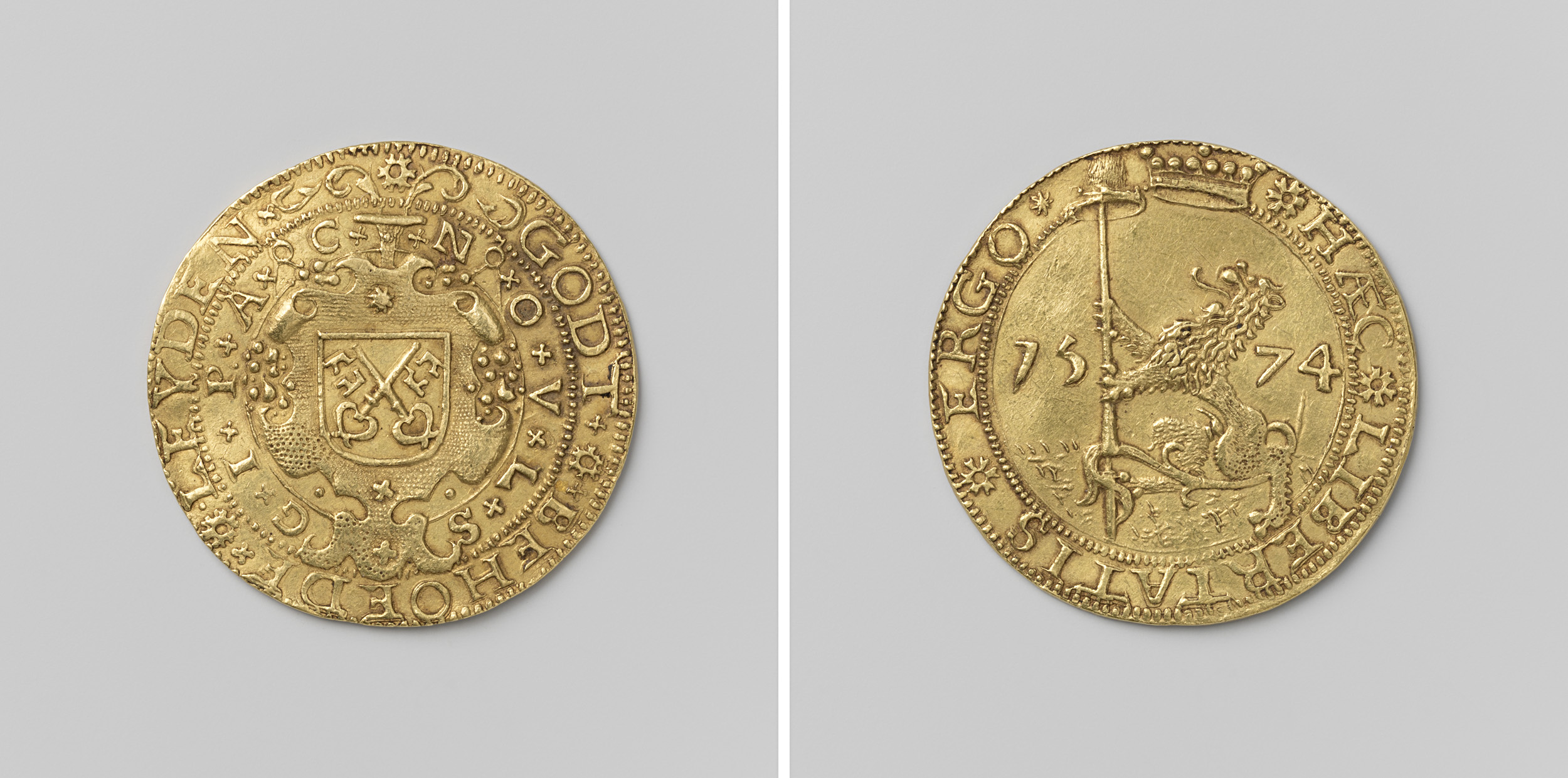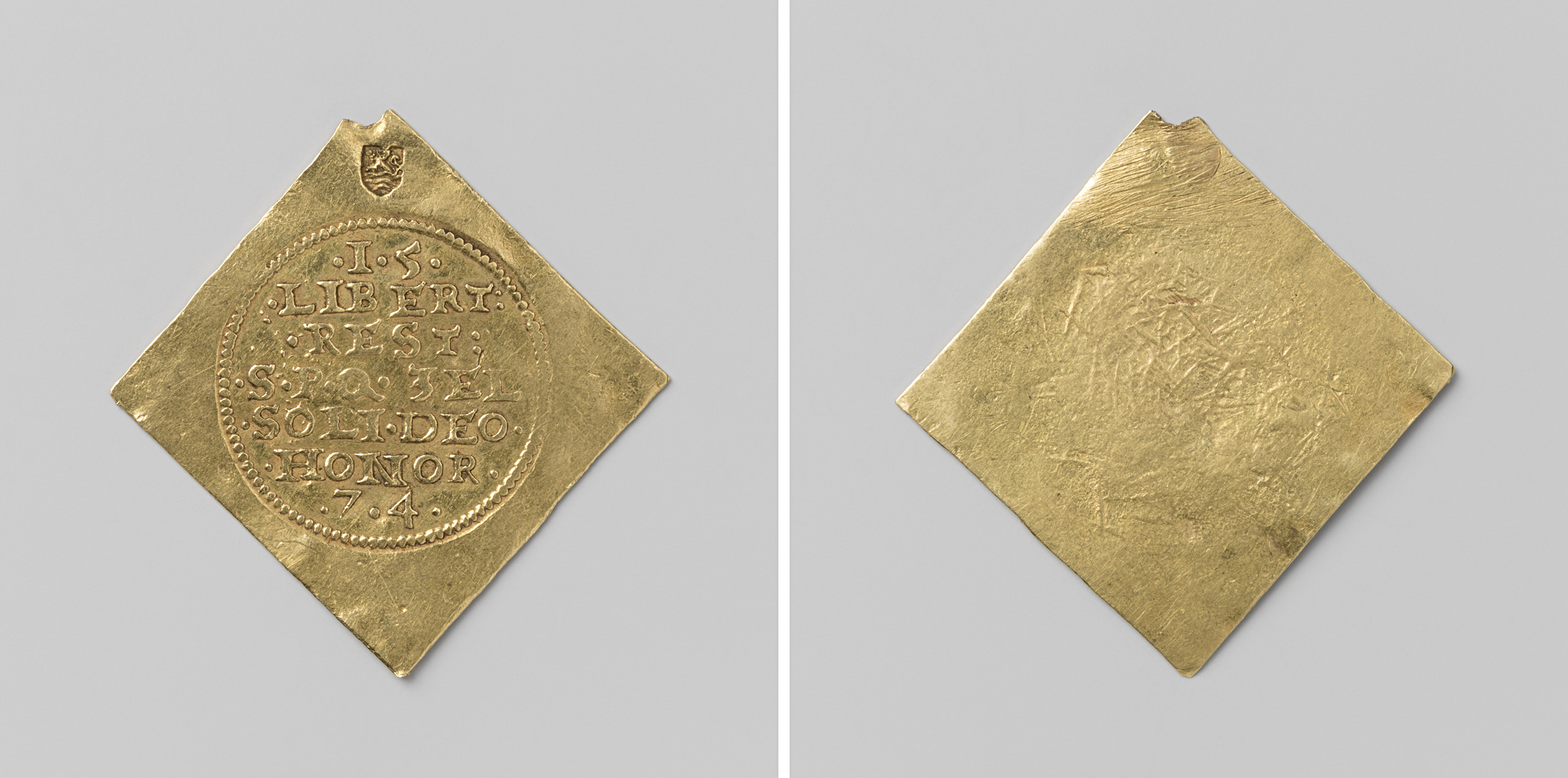 kwart gulden; verguld papieren noodmunt uit Leiden, ...