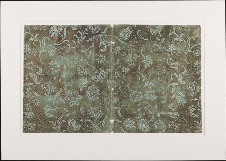 Blad groen geverfd brocaatpapier met bloemmotieven, ...