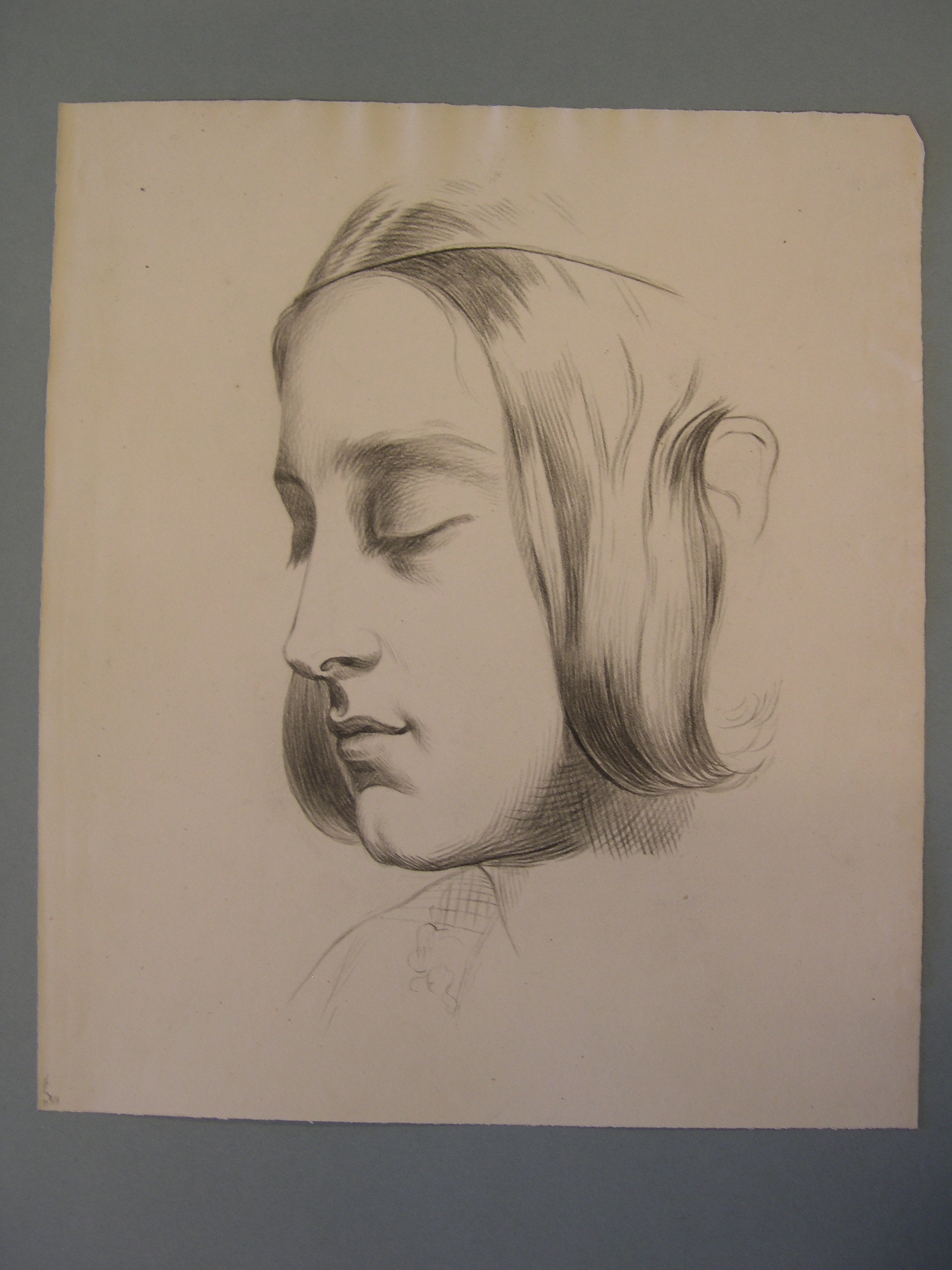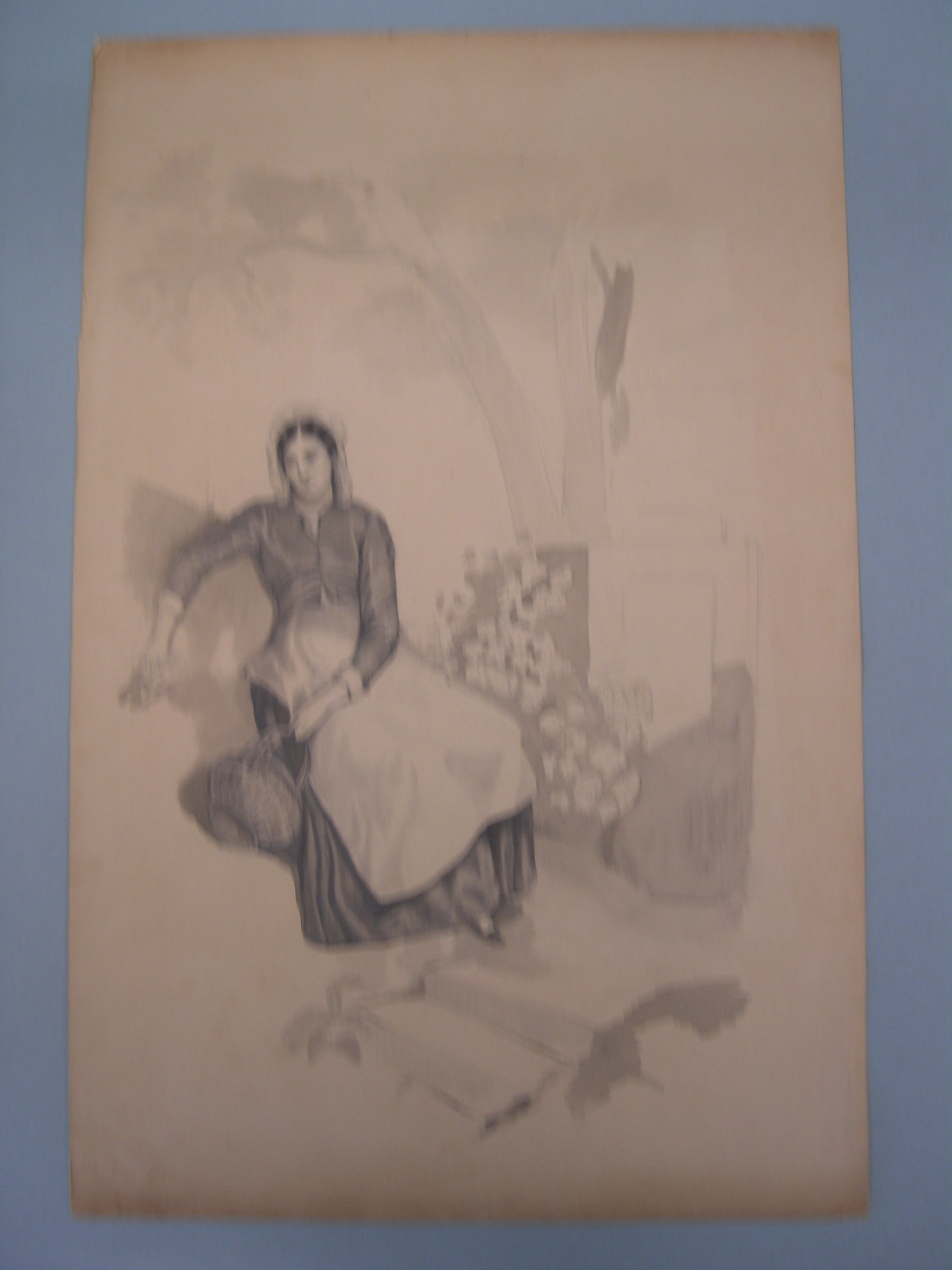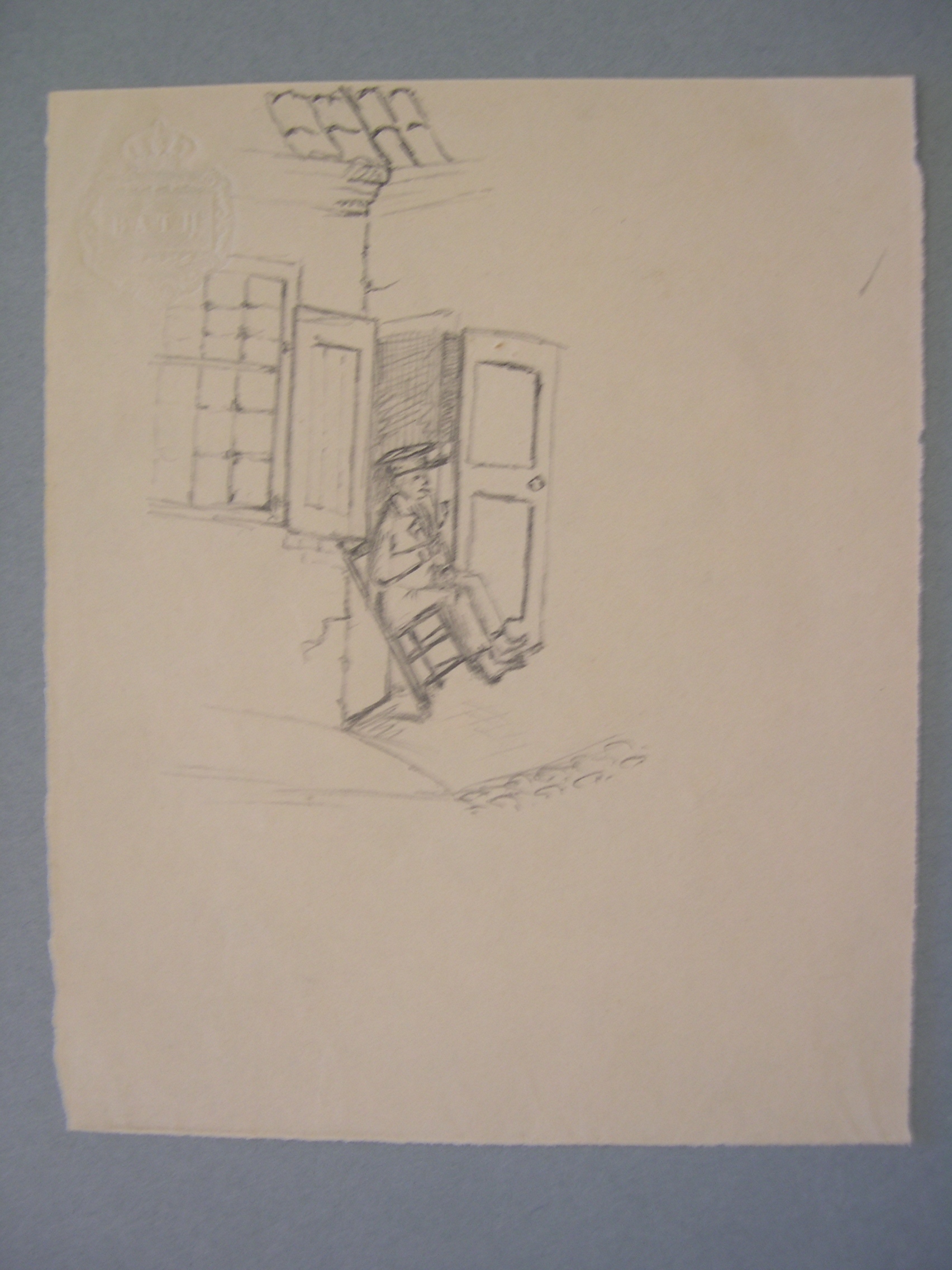 Zittend weesmeisje achter een tafel (recto). Schets ...