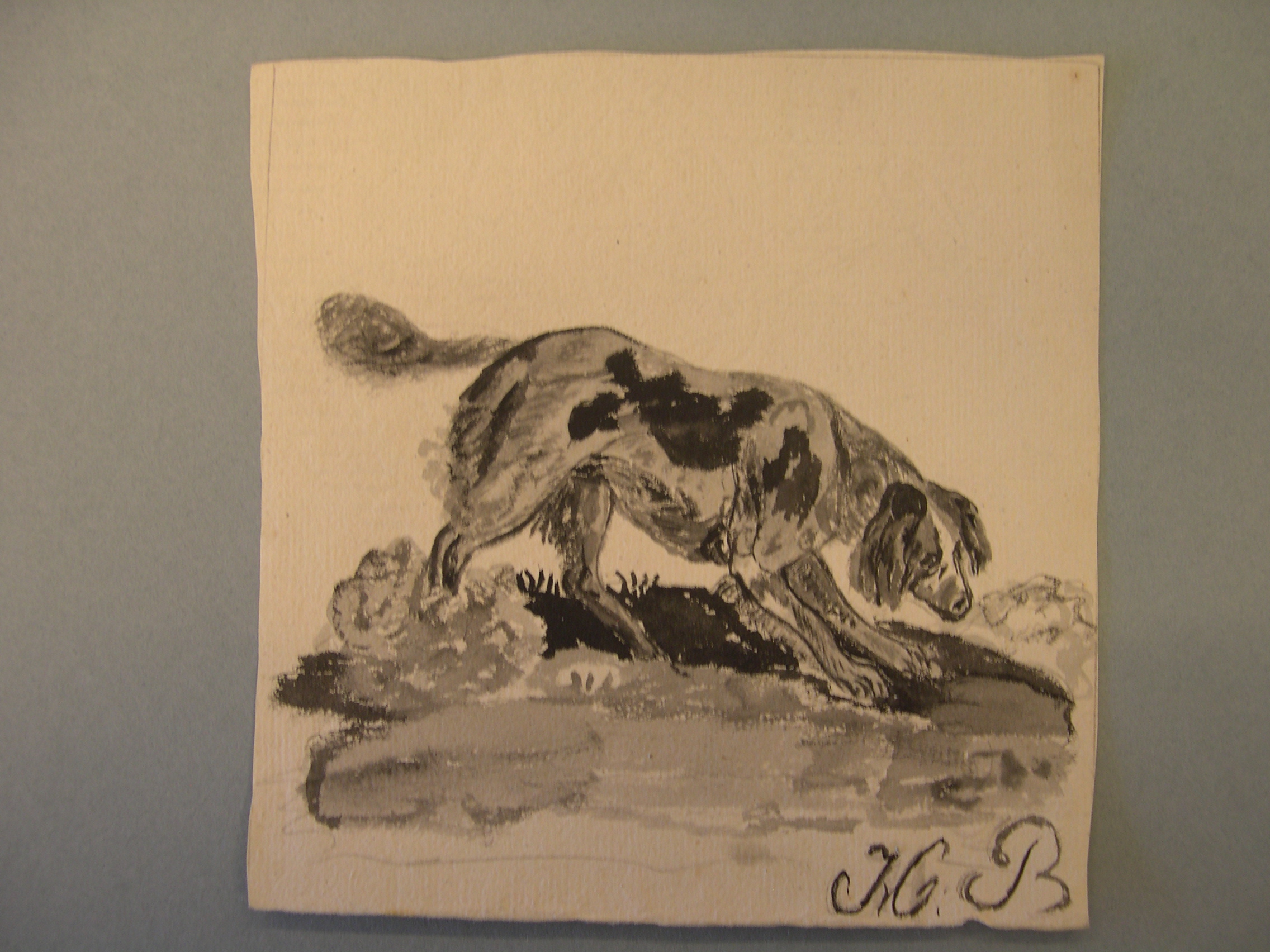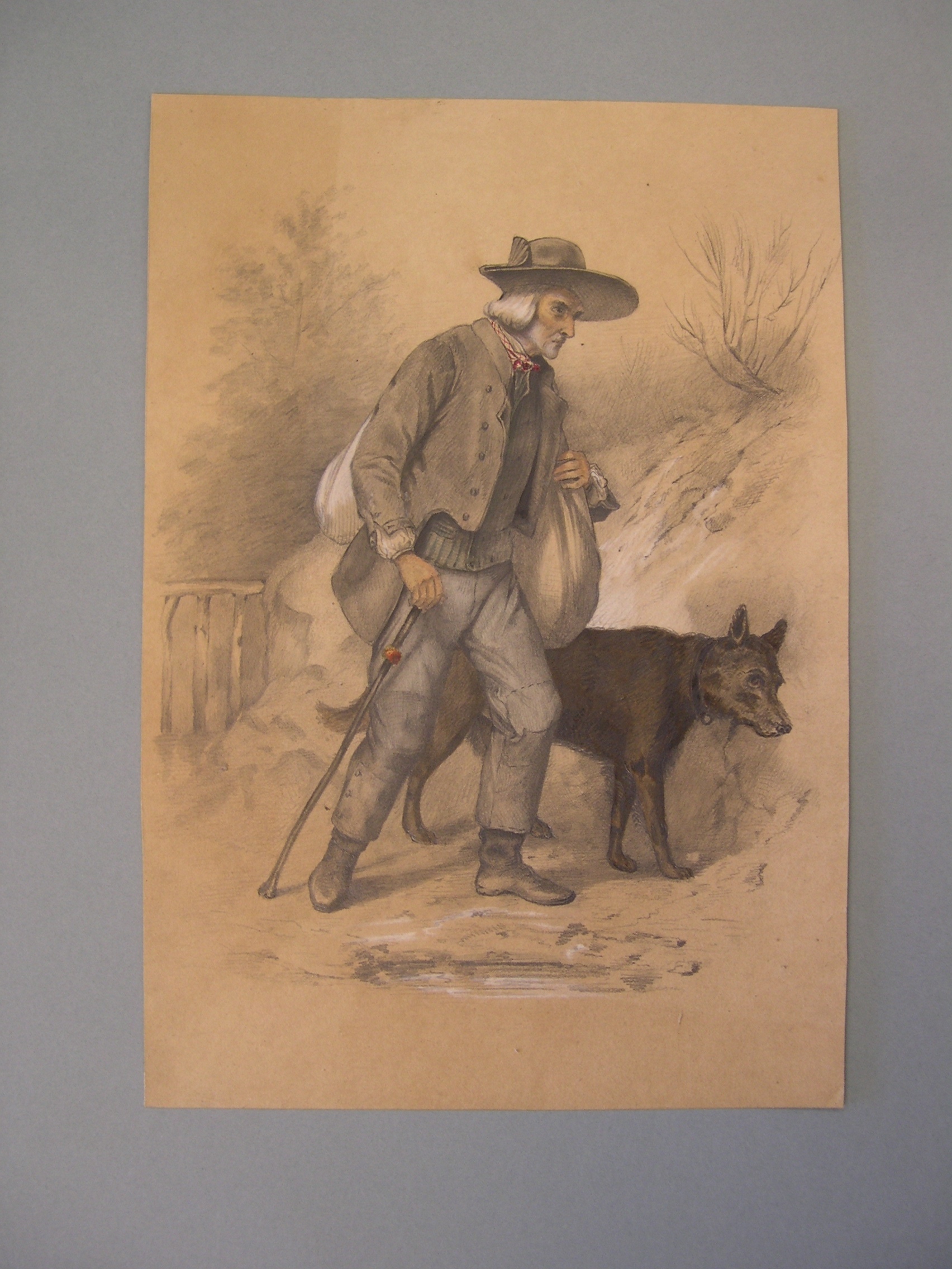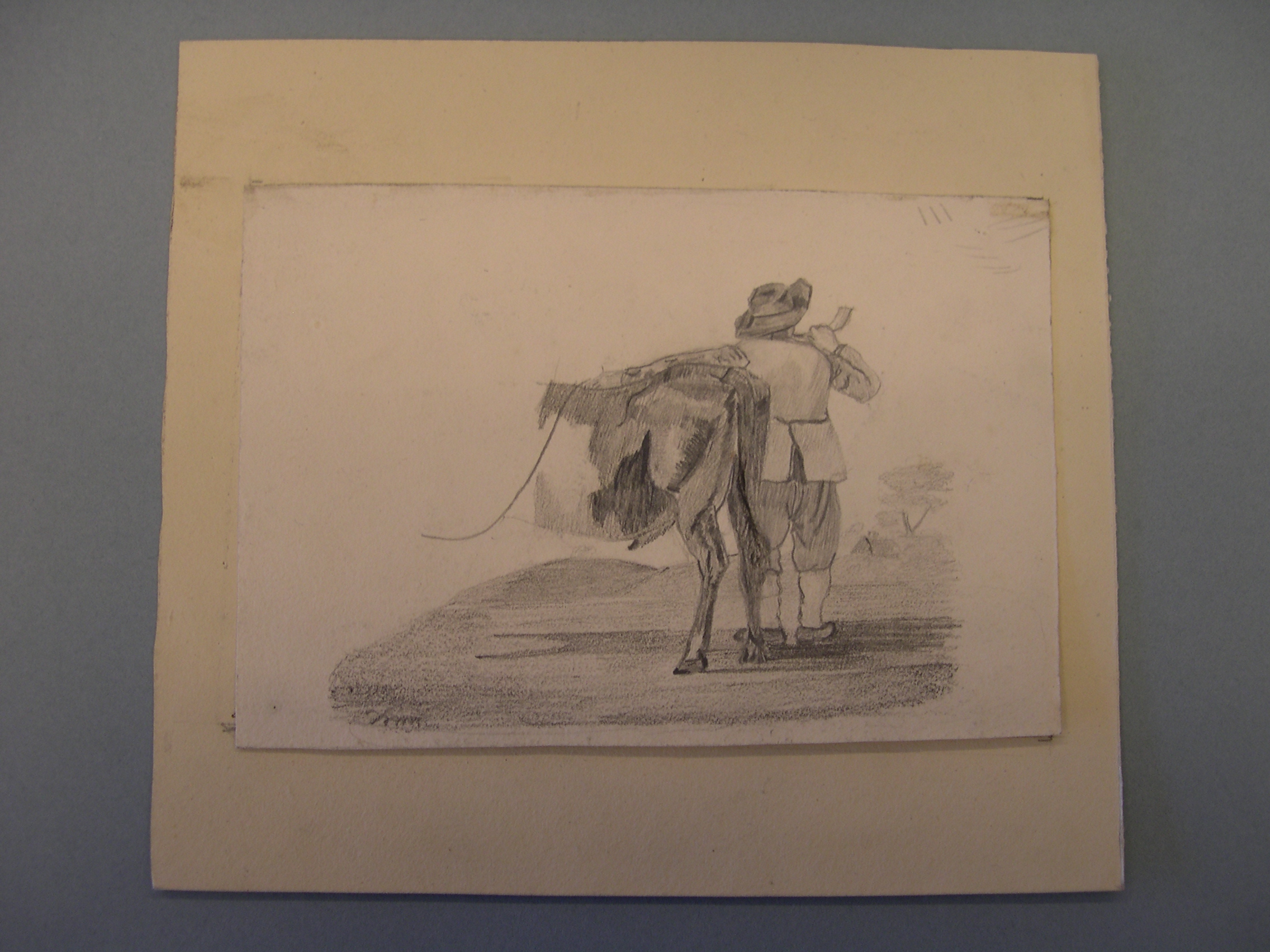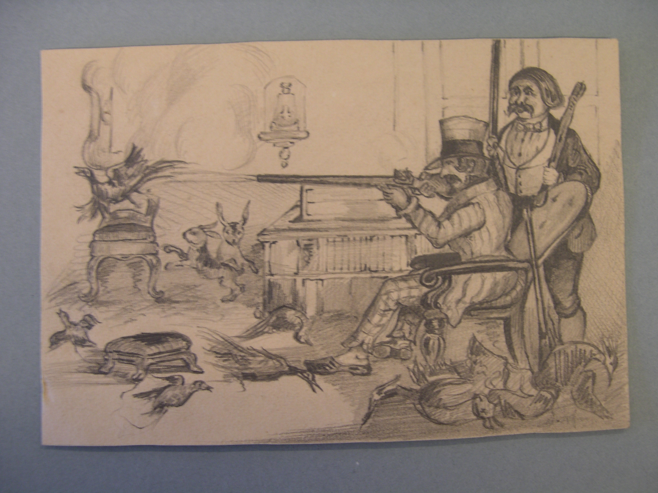 Tekening van een jagend man in huis