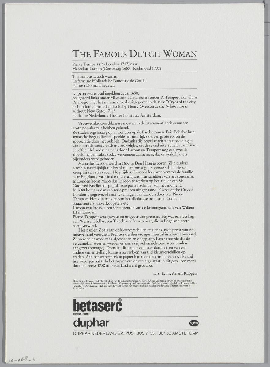 Tekst over The famous Dutch woman