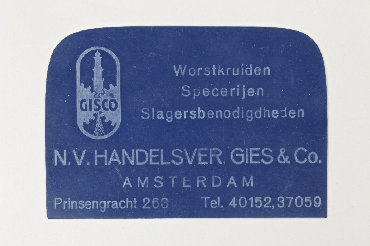 Blauwe plastic schraper met het logo van Gies & Co.,...