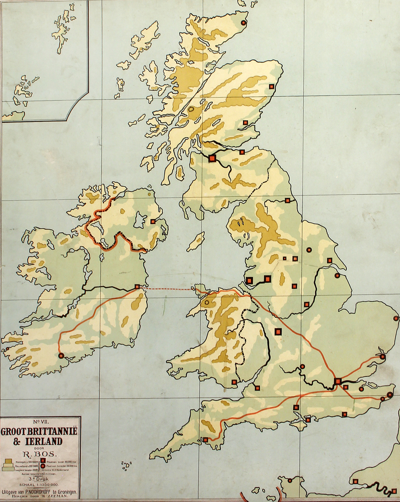 landkaart Groot Bettannië en Ierland