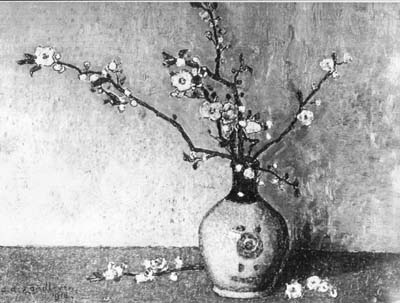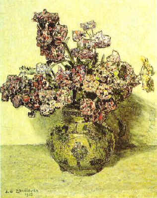 Stilleven met een Lanooy-vaas, een appel en bloemen ...