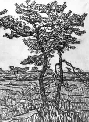 Zware boomstam, op de achtergrond jonge bosaanplant