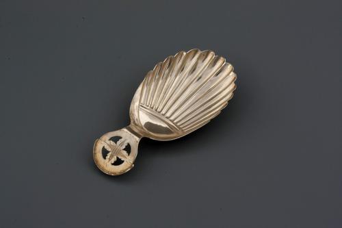 Zilveren theeduim in de vorm van een schelp, door zi...