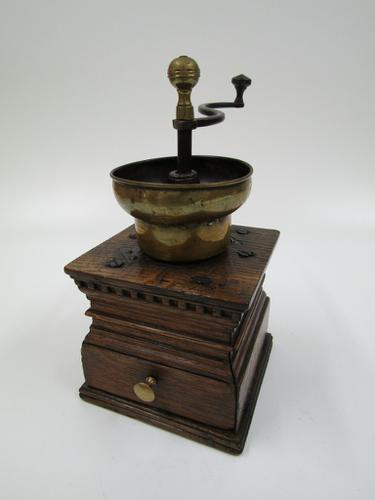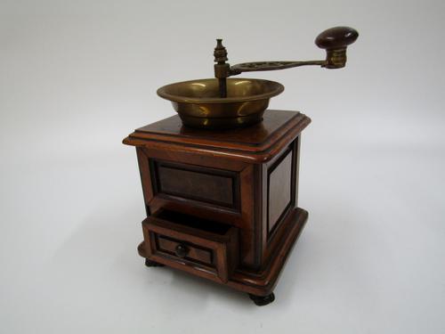 Houten koffiemolen met messing vultrechter