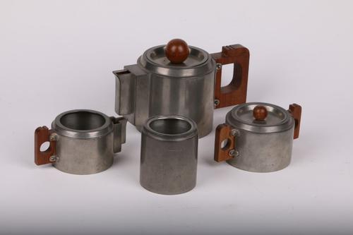 Tinnen theeservies, in Art Deco, gemaakt door Daalde...