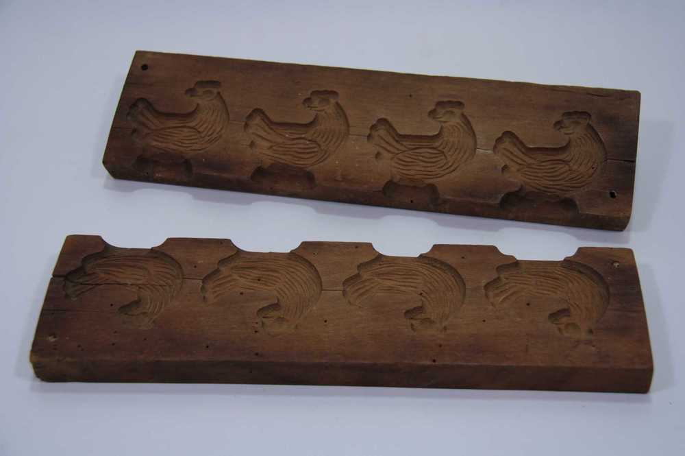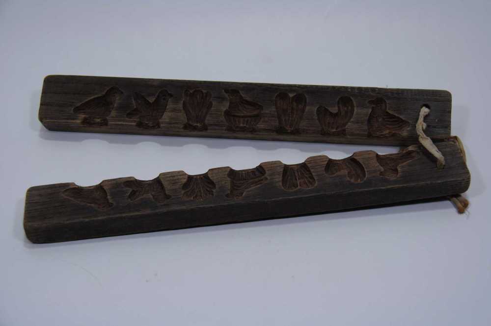 Suikerwerkplank van hout met 7 figuren: vogels en pl...