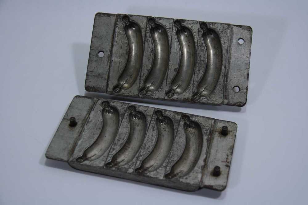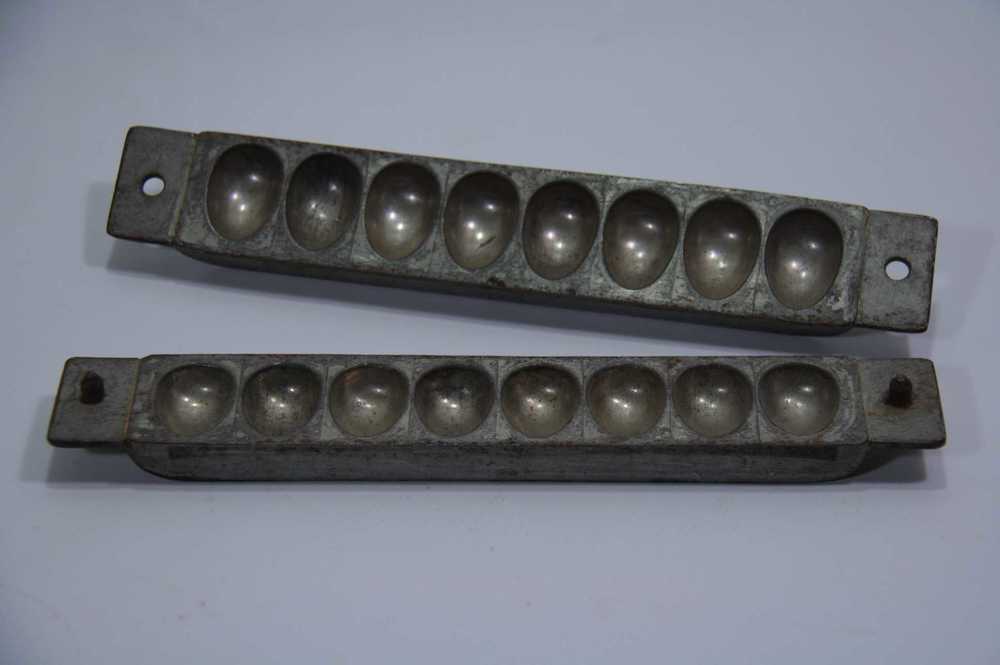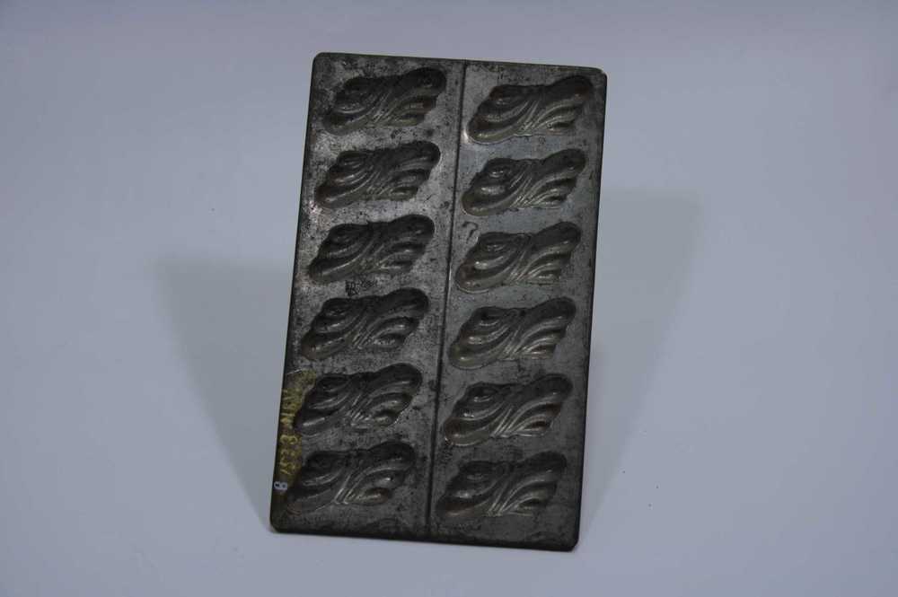 Chocoladevorm van metaal voor 8 repen uit de 20e eeuw