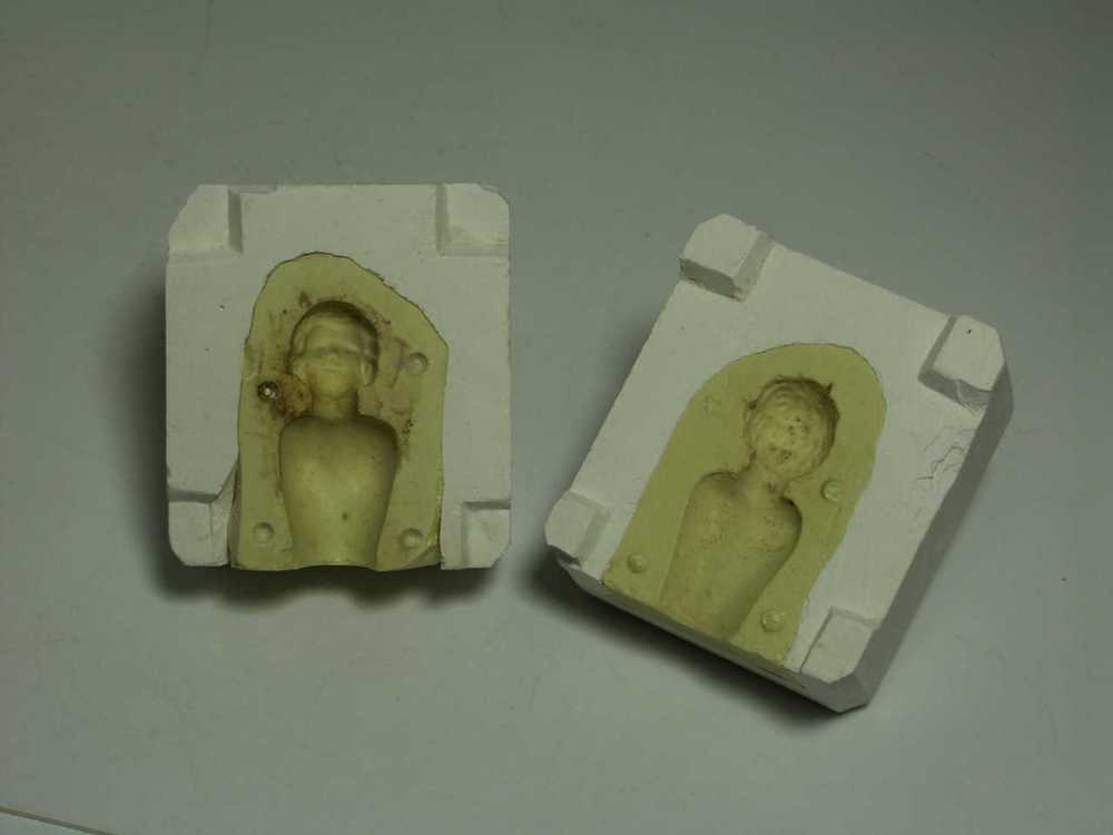 Marsepeinvorm van gips in de vorm van 2 mannen met p...
