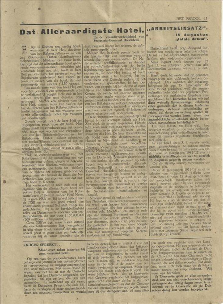 Het Parool Amsterdamsch Nieuwsbulletin No.206, zonda...