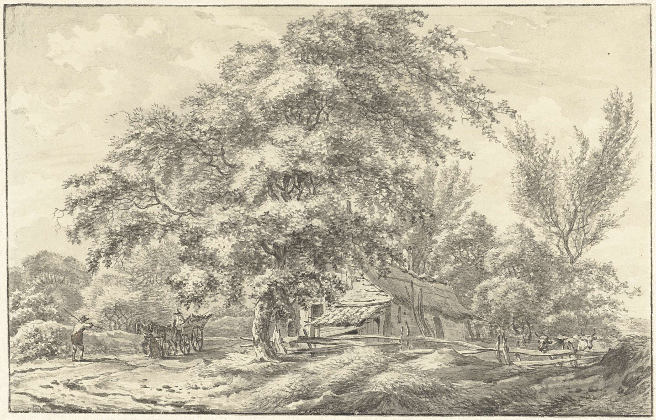 Landschap met vee bij een boom