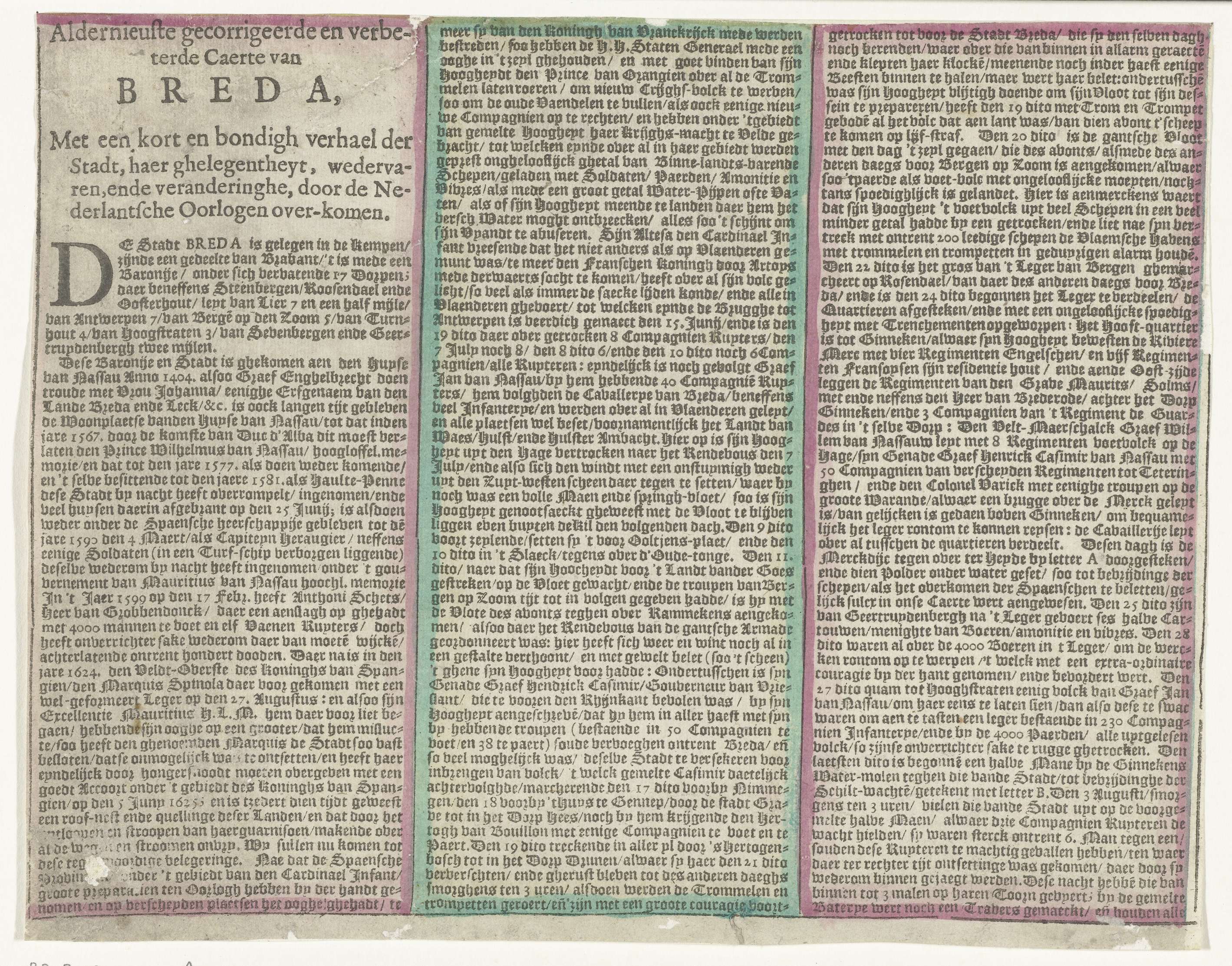 Tekstblad bij de kaart van het beleg van Breda (link...