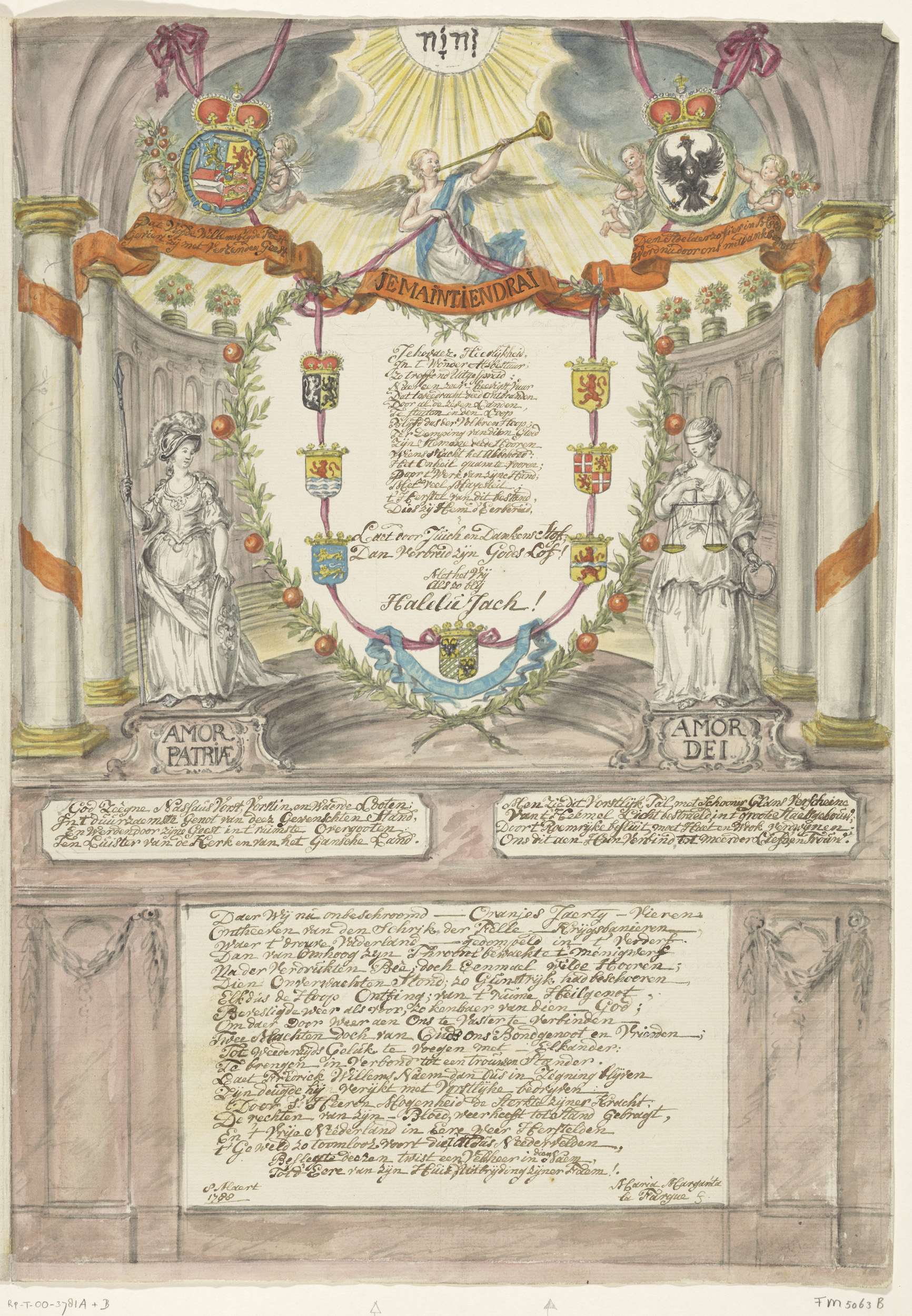 Kalligrafie op de eendracht door Oranje, 1787-1788