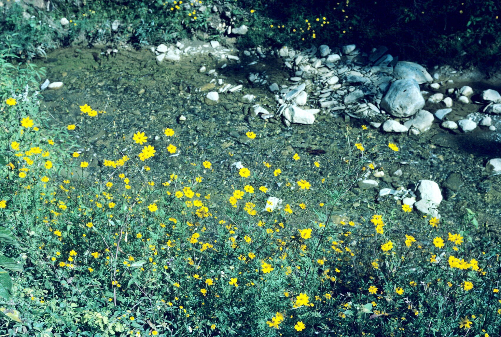 bloemenveldje langs riviertje