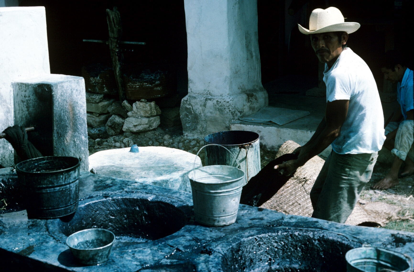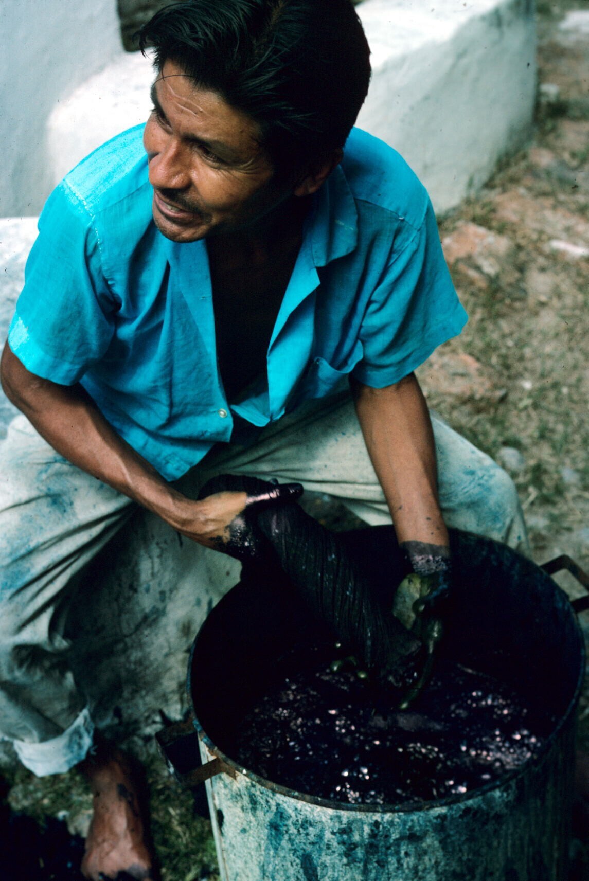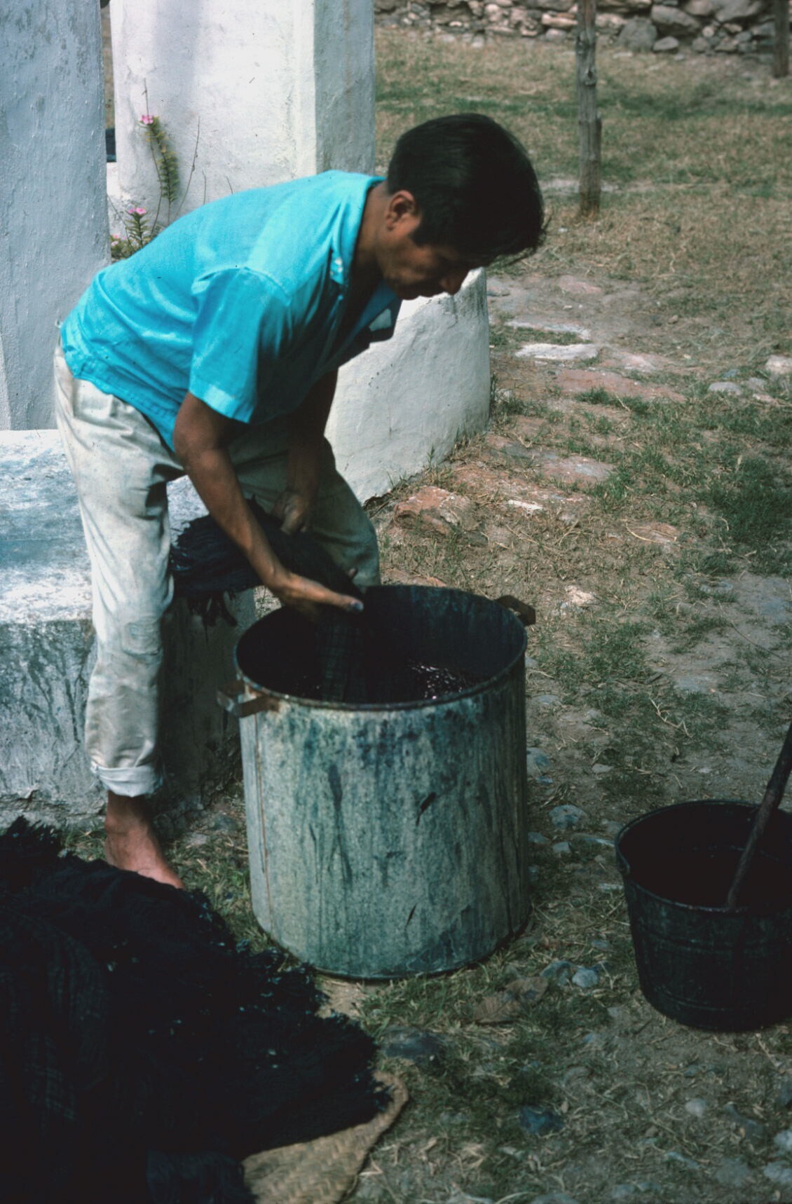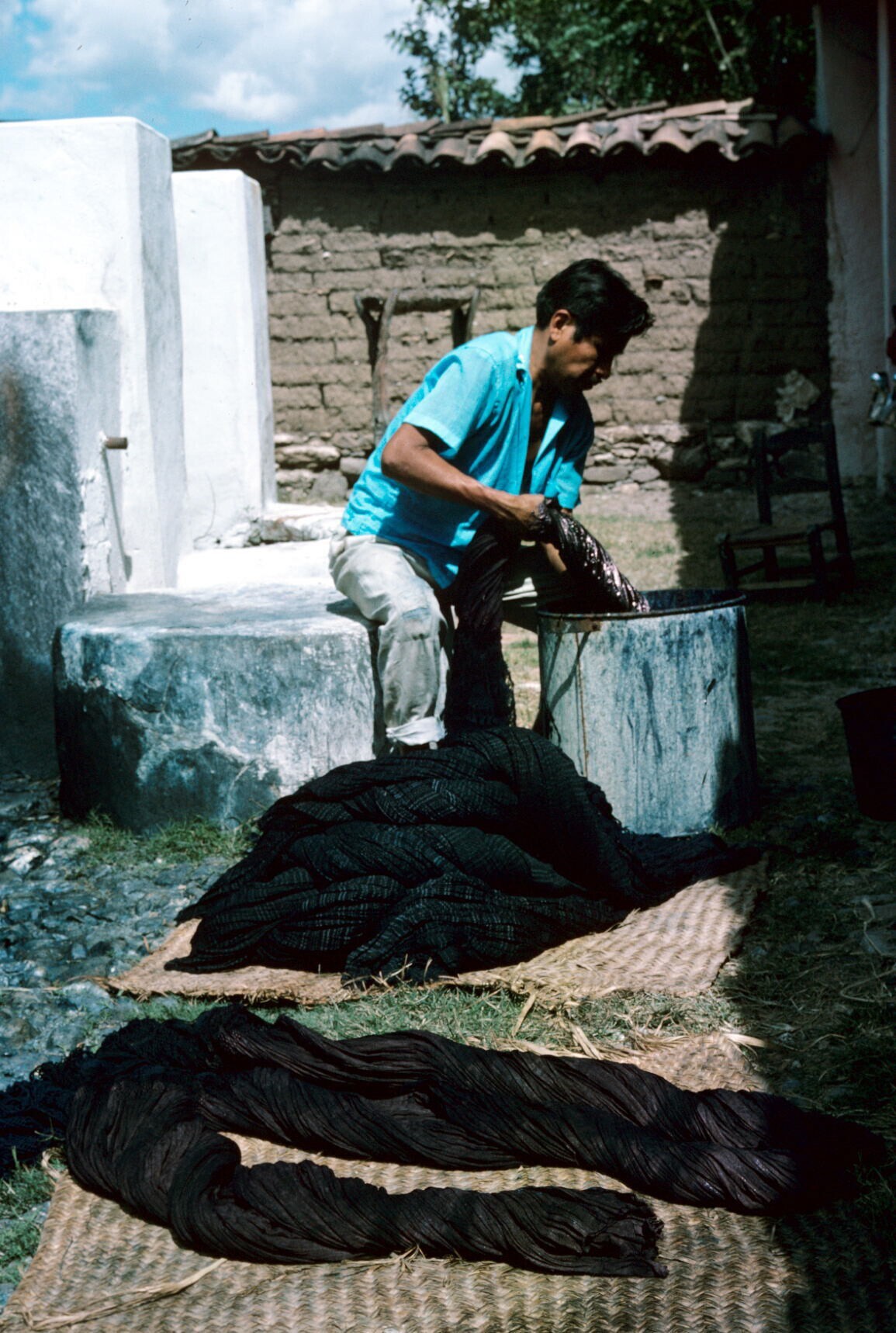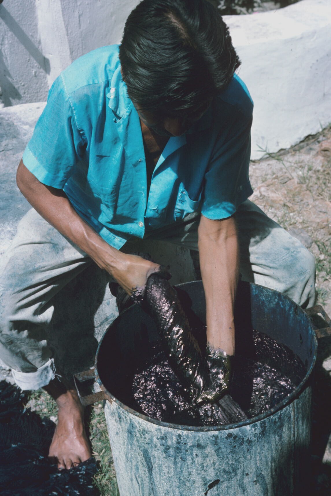 man, rebozos (omslagdoeken) vervend in añil (indigo)...