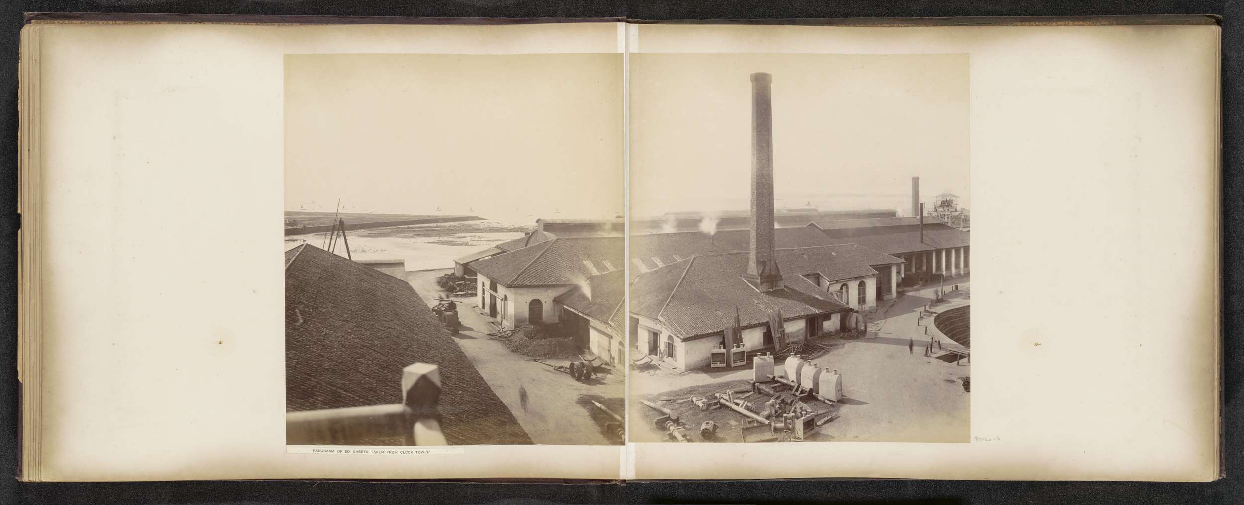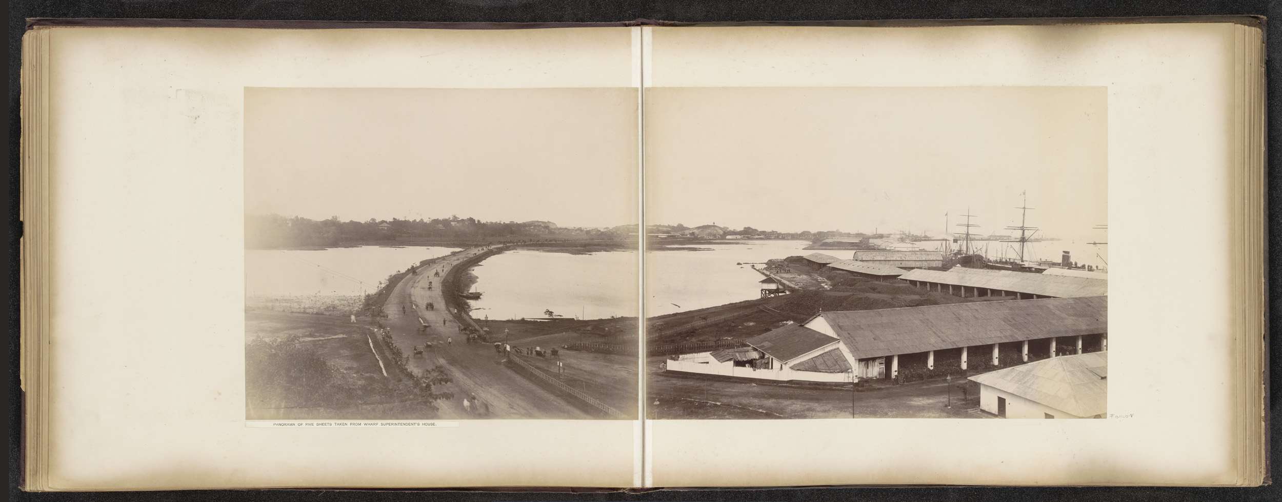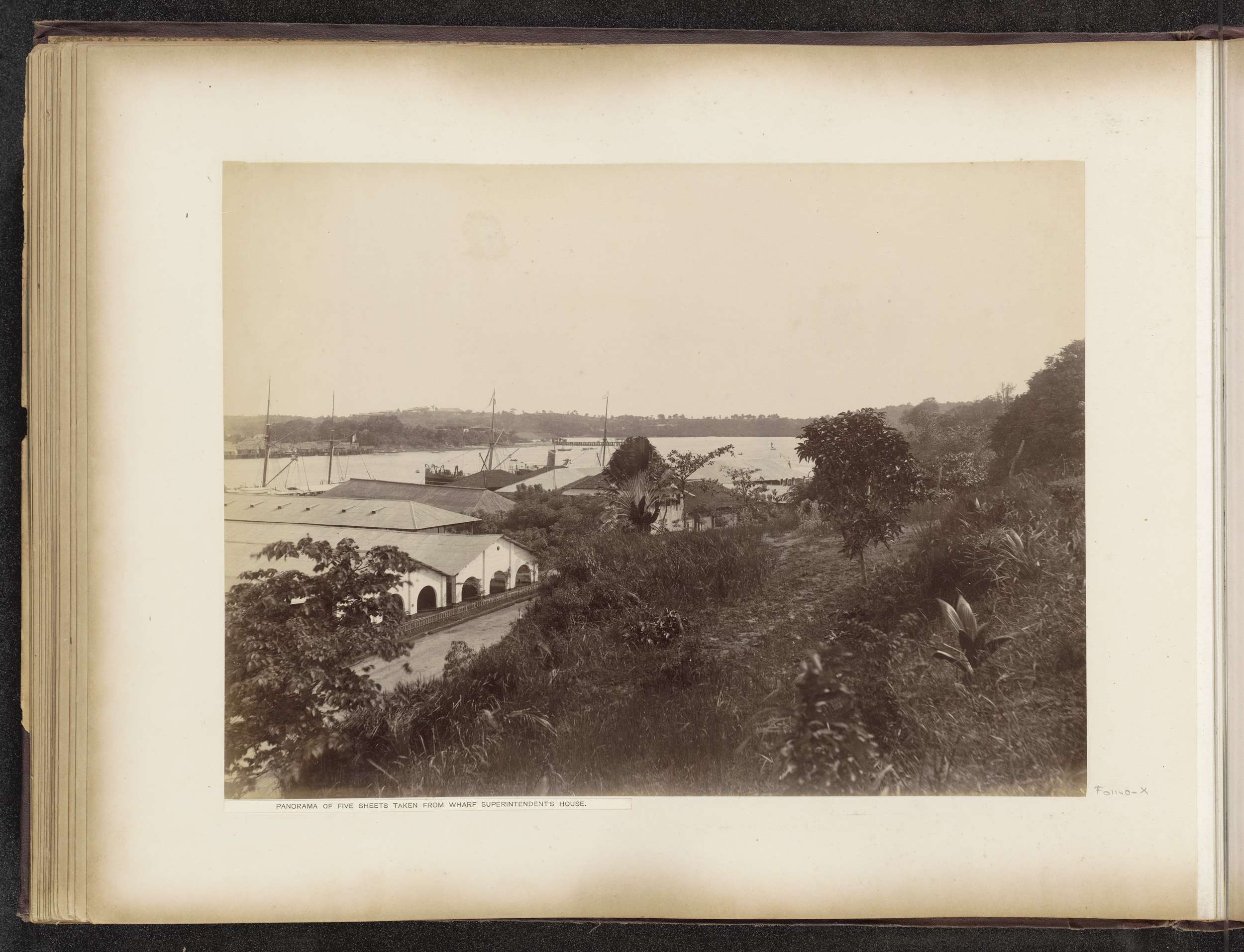 Gezicht op de gebouwen en dokken van de Tanjong Paga...
