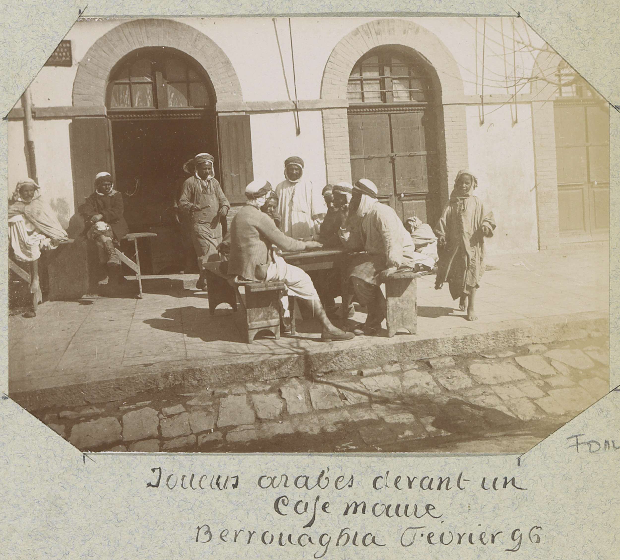 Mannen tijdens een bordspel voor een café in Berroua...