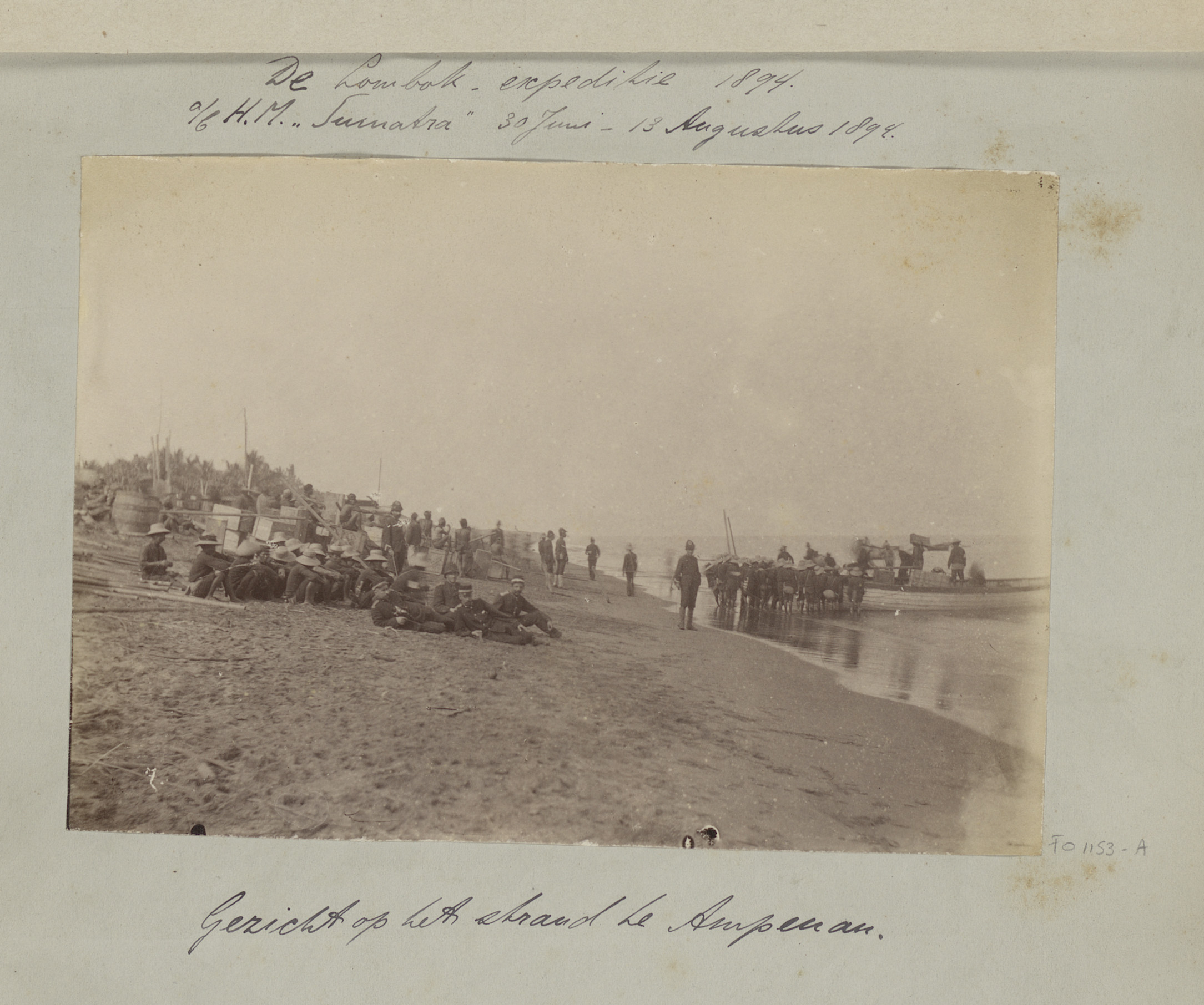 Strand te Ampenan met soldaten tijdens de Lombok-exp...