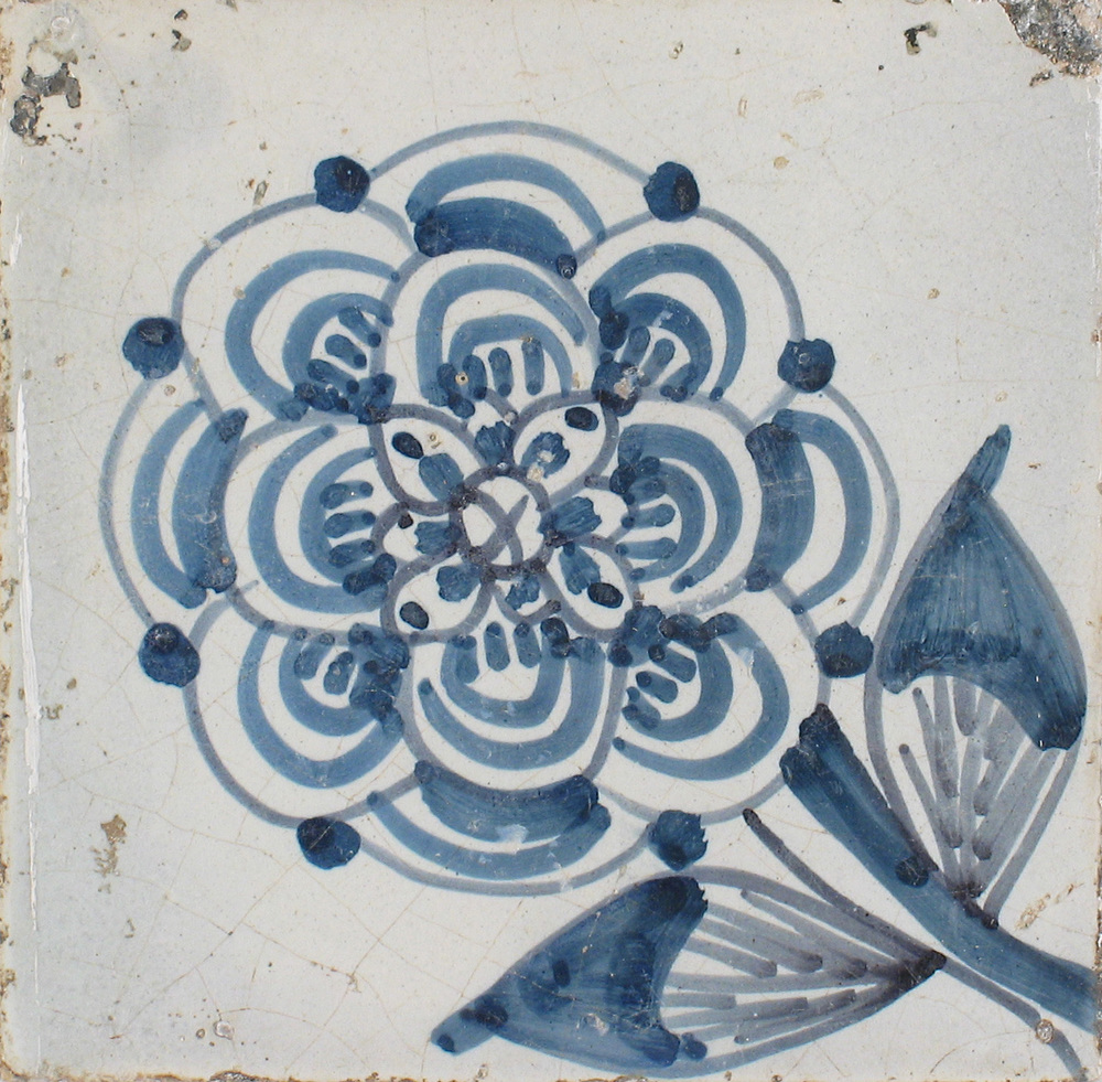 Tegel van aardewerk met tinglazuur, blauw beschilder...