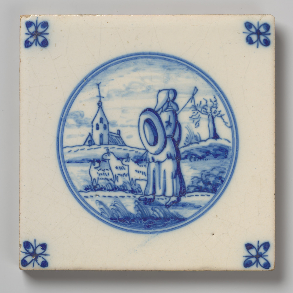 Tegel van keramiek met tinglazuur, voorstellende: st...