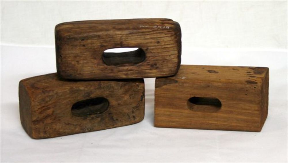 Kegblok koeienblokhout. Rechthoekige blokken hout me...