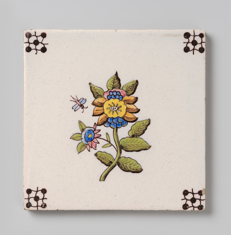 Tegel met grote strooibloem, vervaardigd in Utrecht,...
