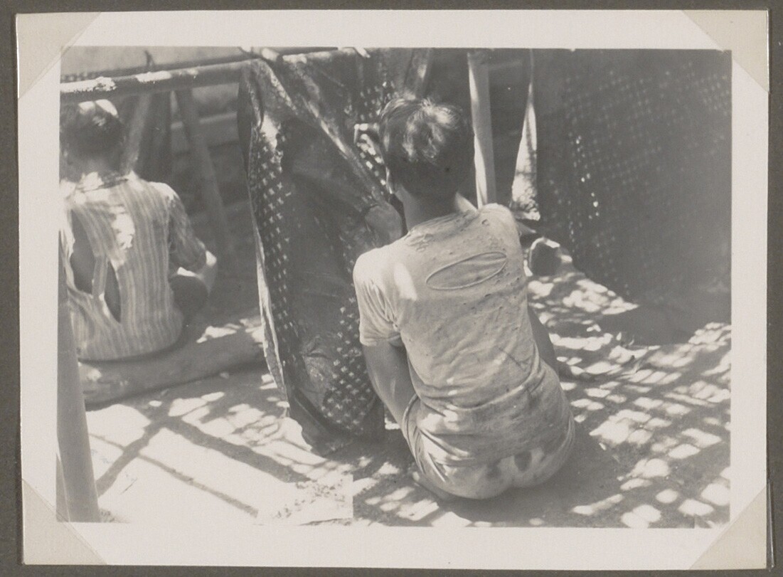 Een vrouw batikt een heupdoek