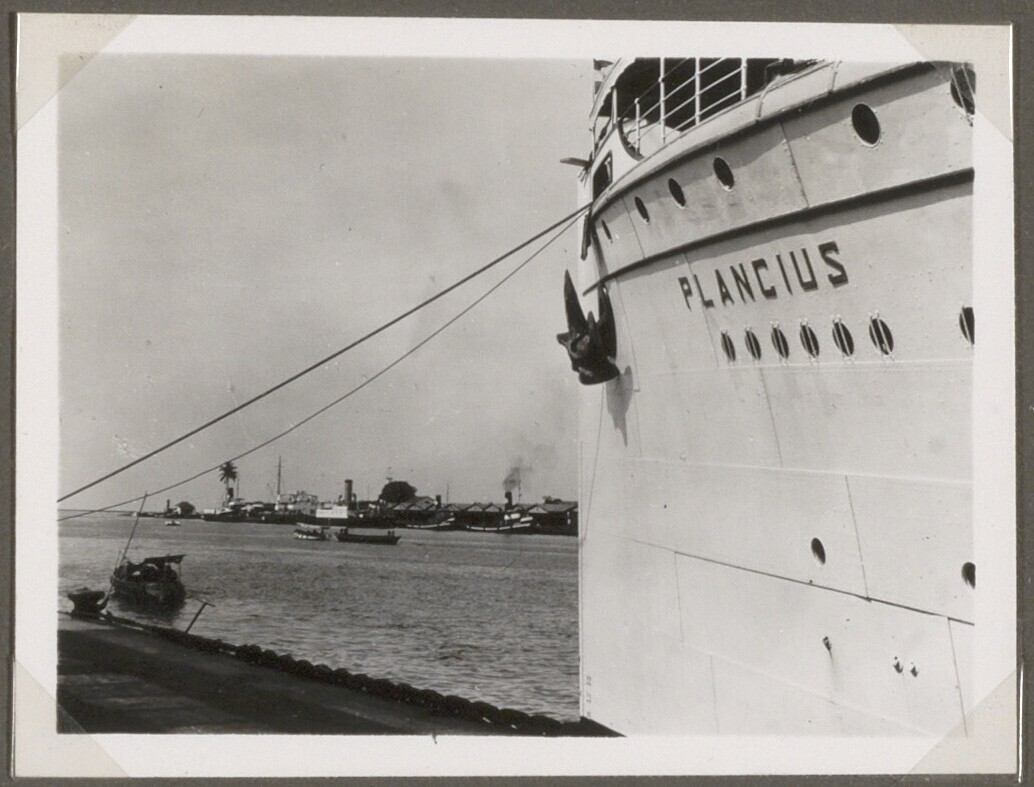 Het schip Plancius voor afvaart naar Singapore