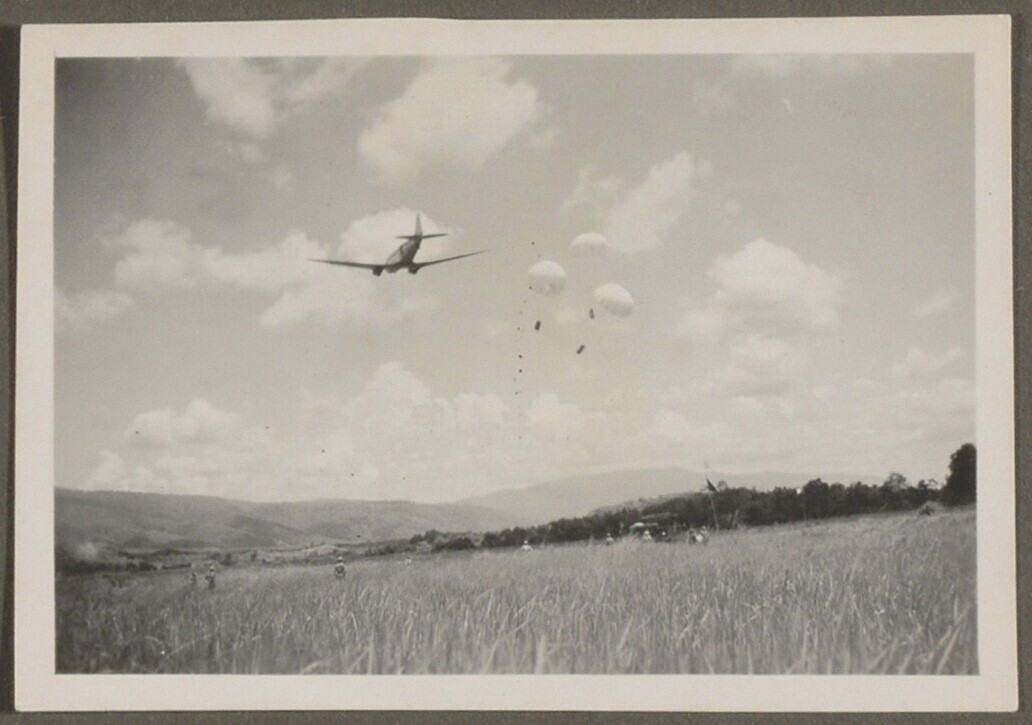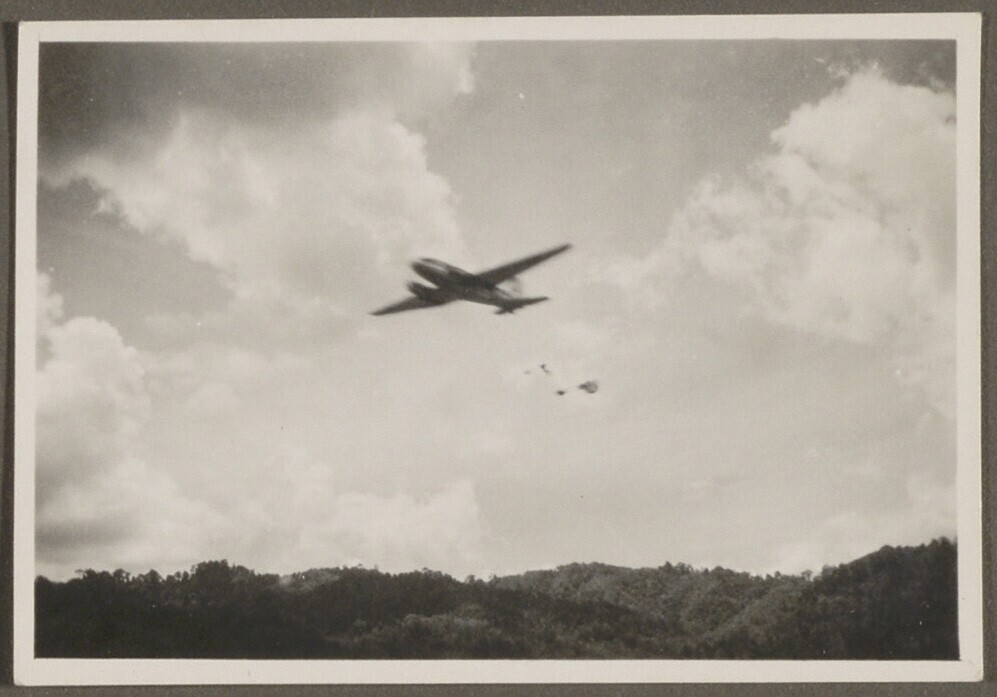 Amerikaans vliegtuig dropt CARE paketten