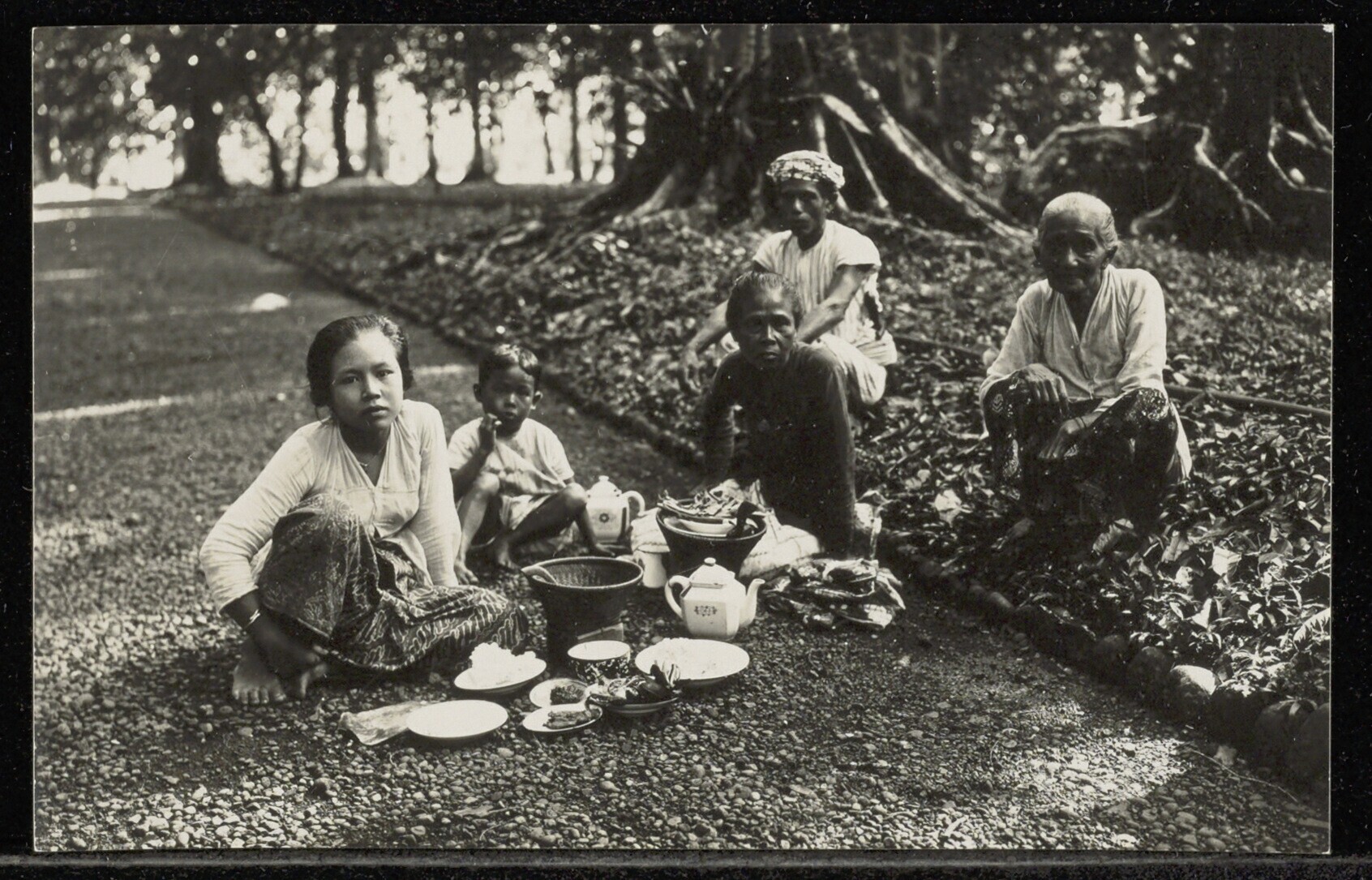 Groep met drank en etenswaren in 's Lands Plantentui...