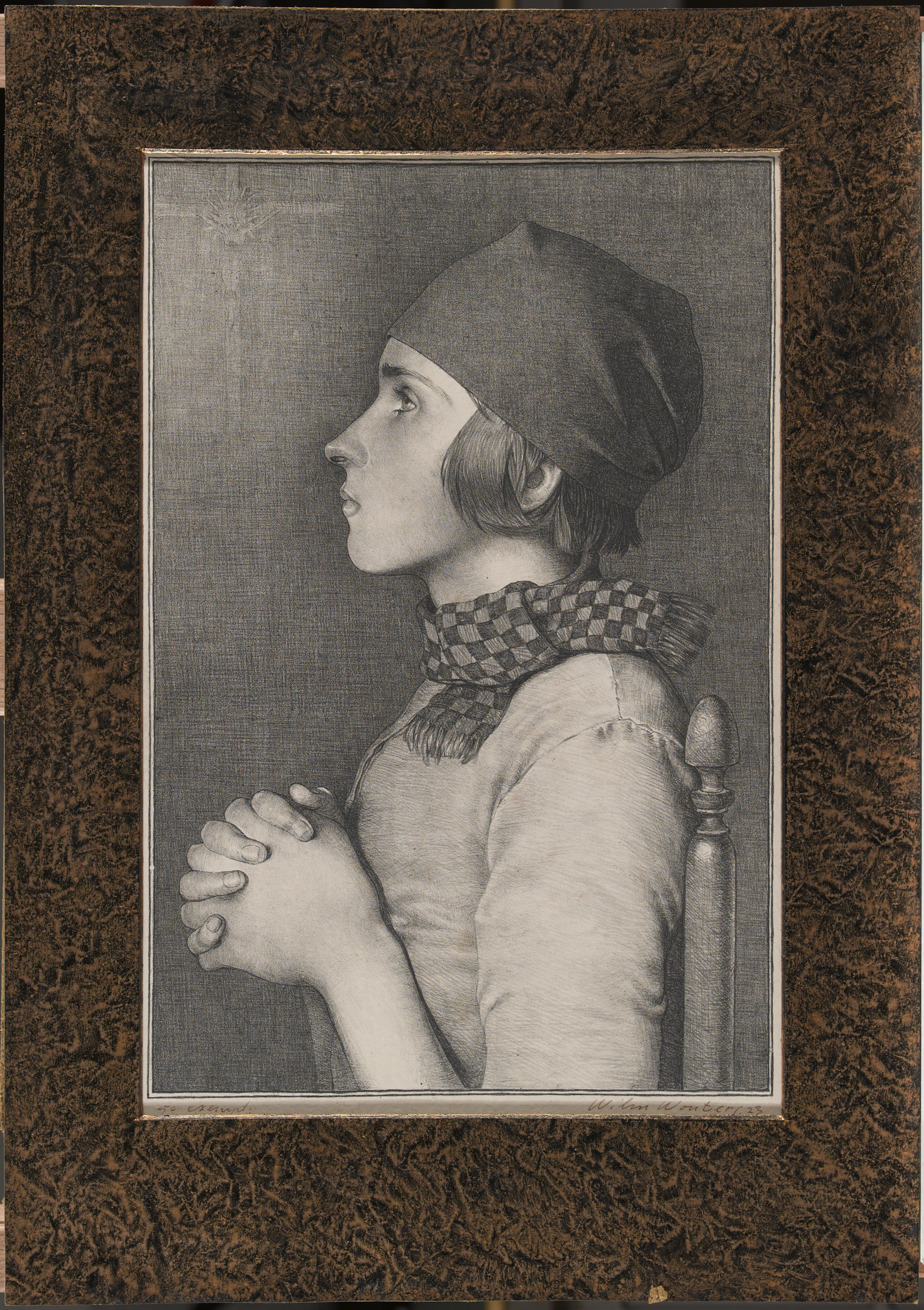 Biddend meisje in daagse dracht van Volendam, 1923