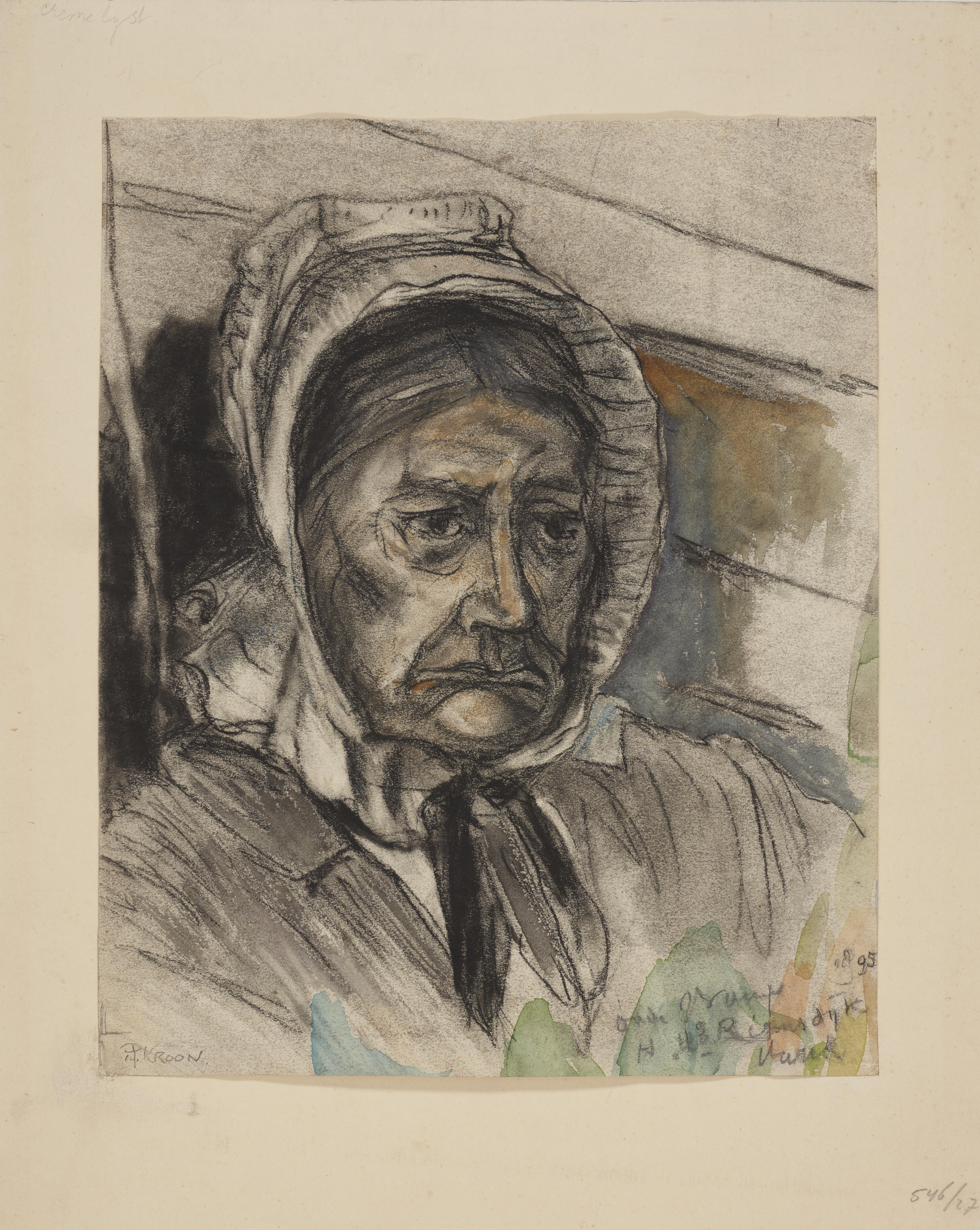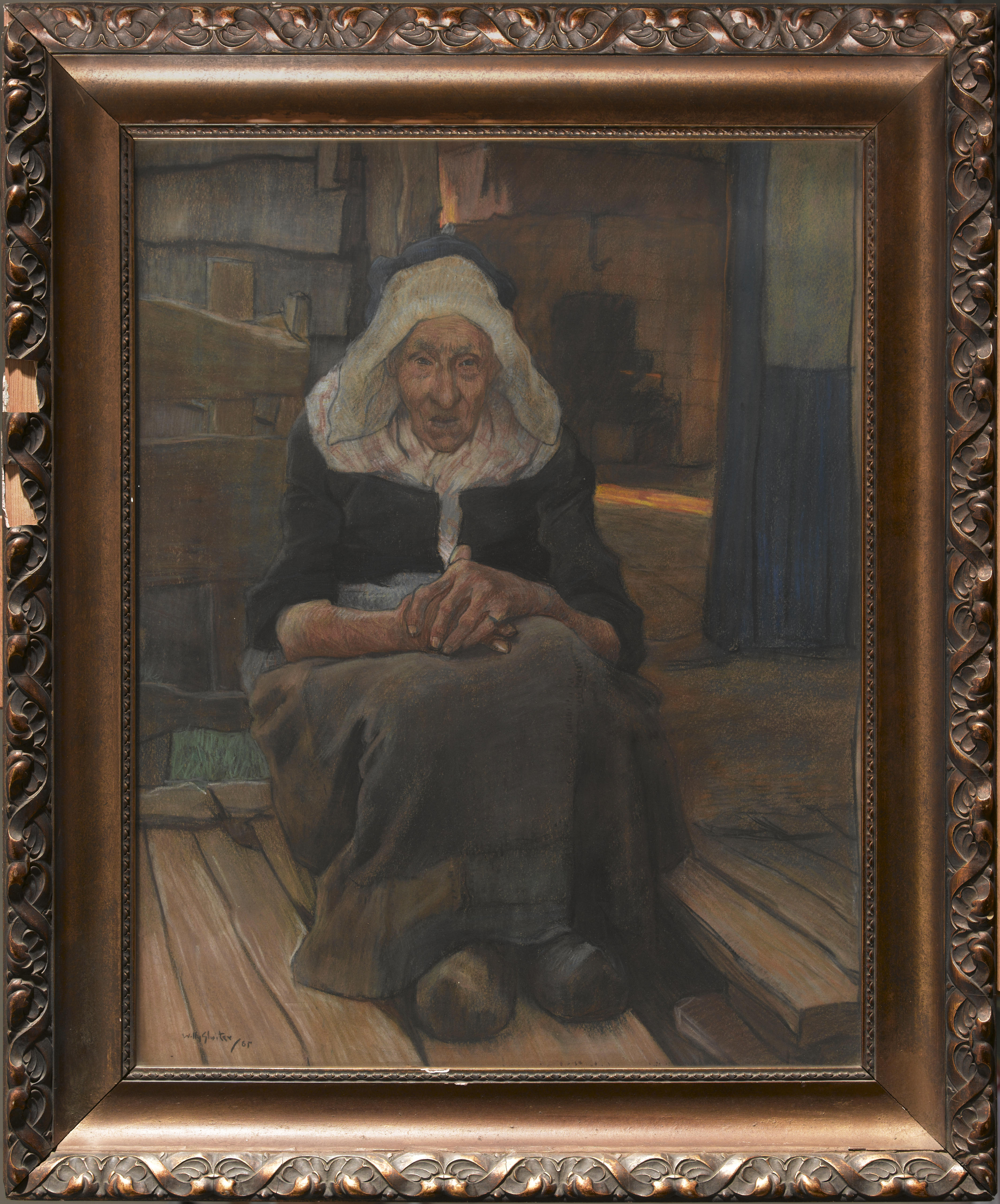 Zittende oude vrouw in Volendammer dracht, 1905