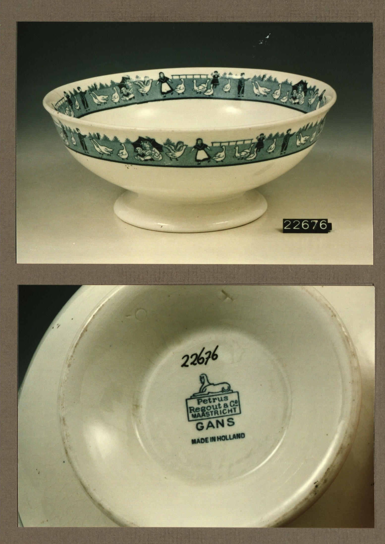 Schaal op voet met decor Gans