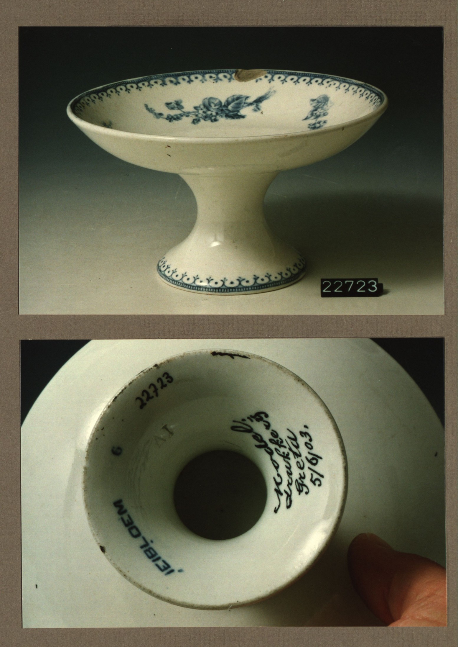Schaal op voet, model Greta met decor Meibloem