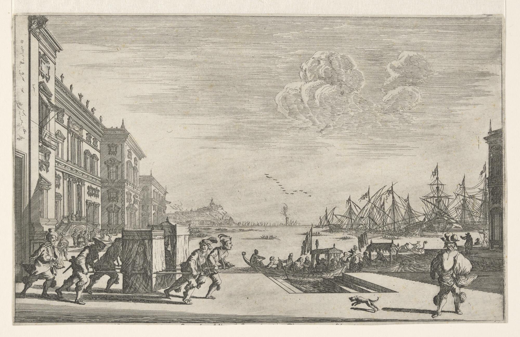 Prent uit een reeks van 12 van zeehavens en paleizen...