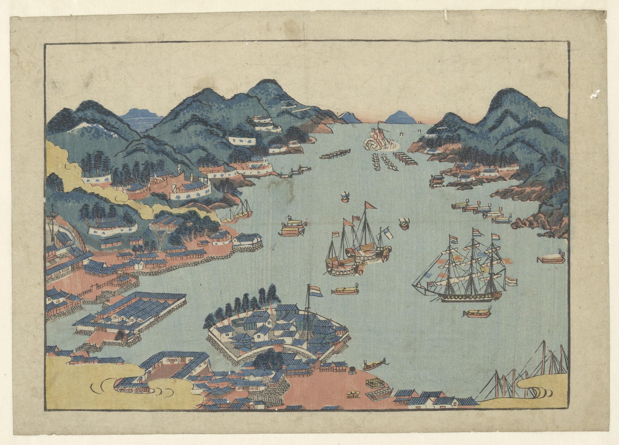 Nagasaki-prent: de baai van Nagasaki