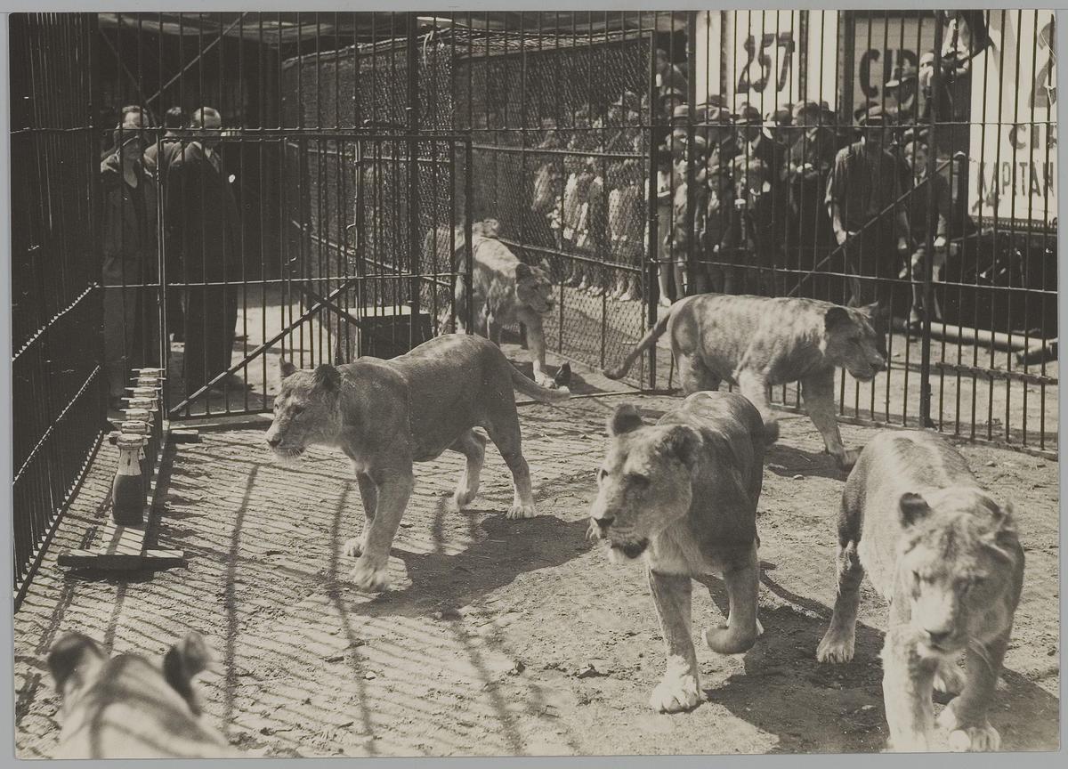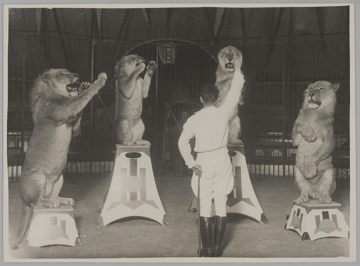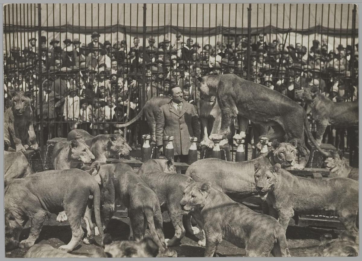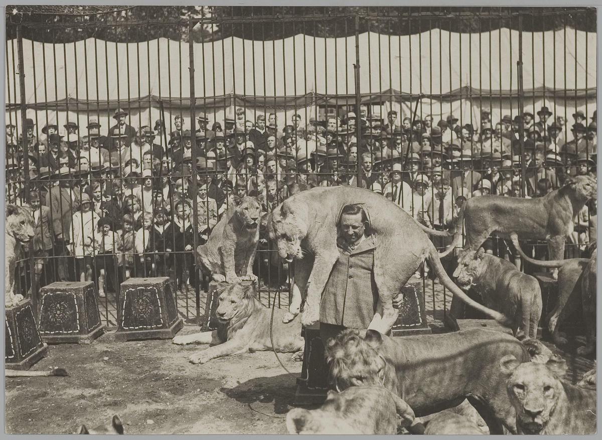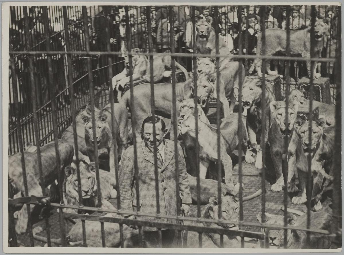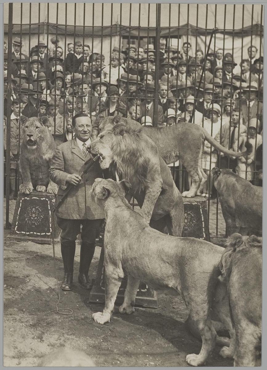 Circus kapitän Alfred Schneider. Leeuwen betreden de...