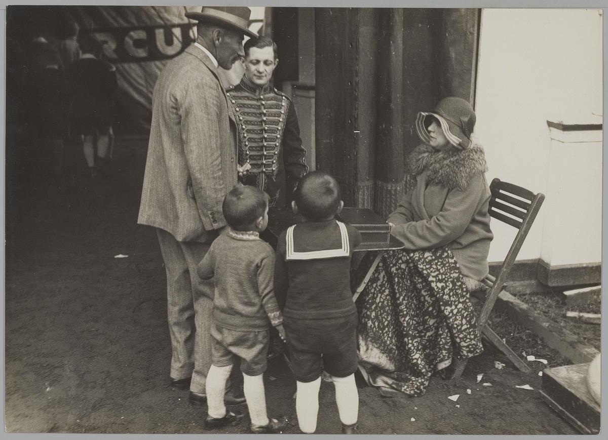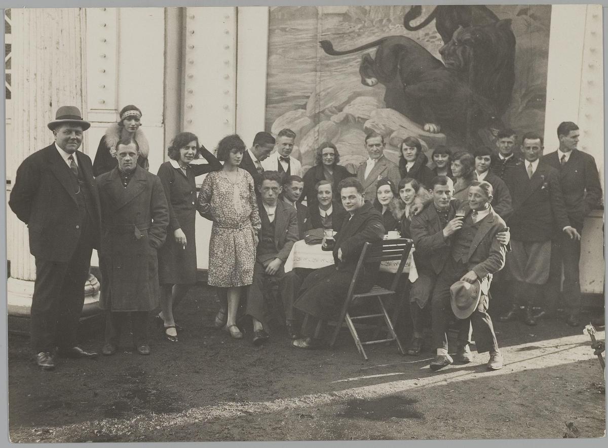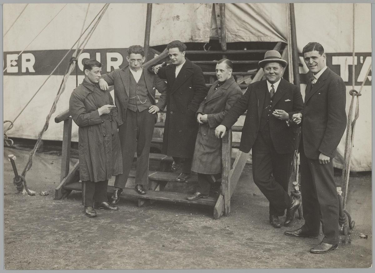 Circus kapitän Alfred Schneider. Groepje personeel, ...