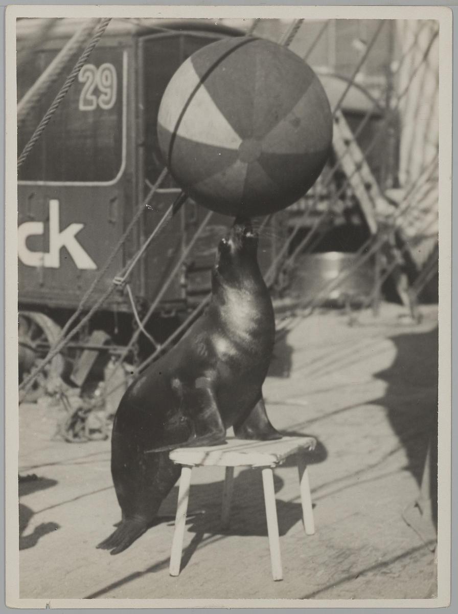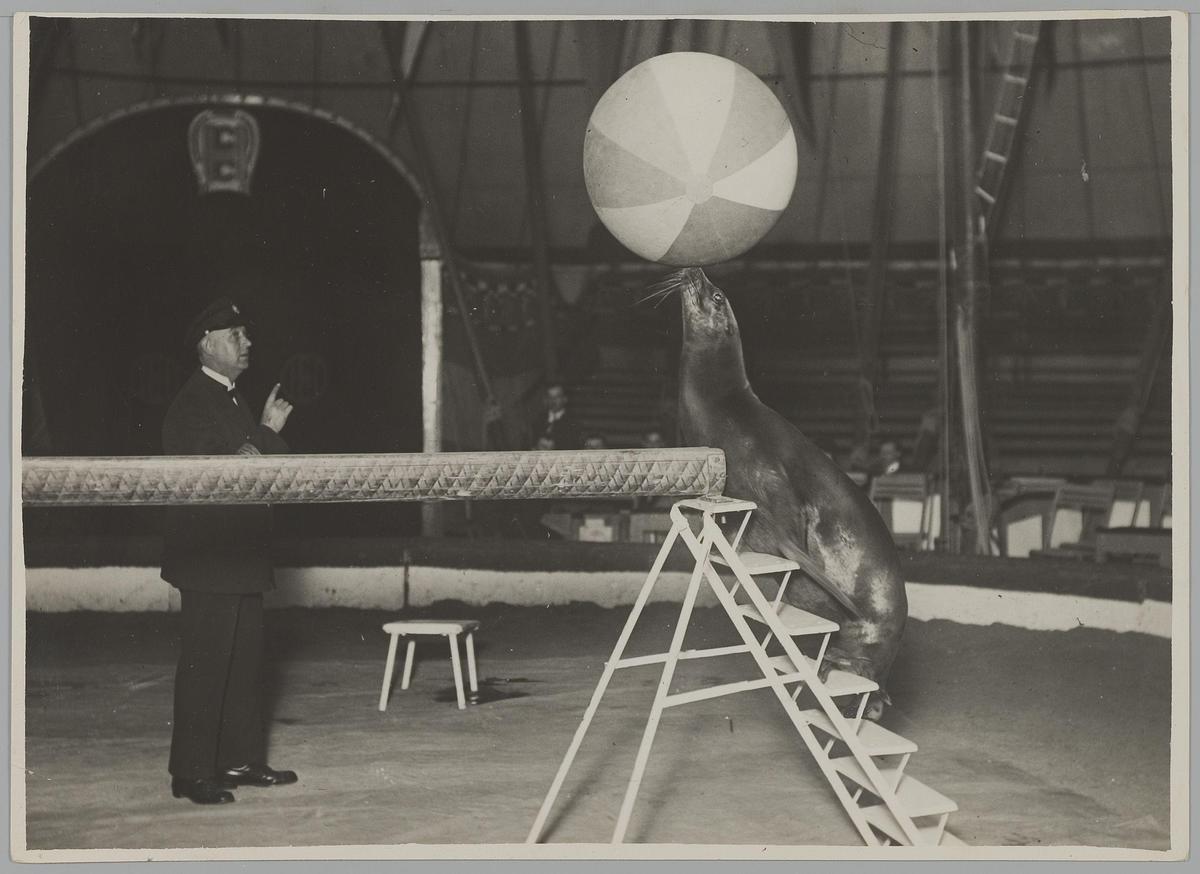 Circus Carl Hagenbeck, balancerende zeeleeuw. Arnhem...