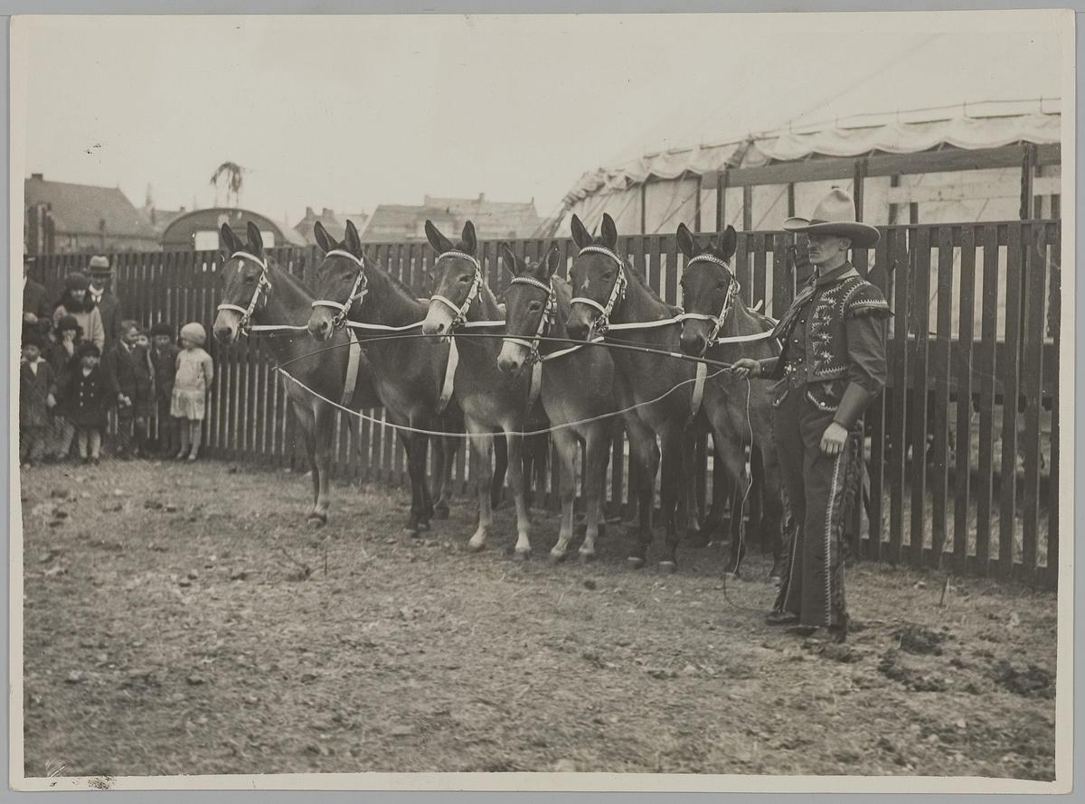 Circus Carl Hagenbeck, groep gedresseerde muilezels ...